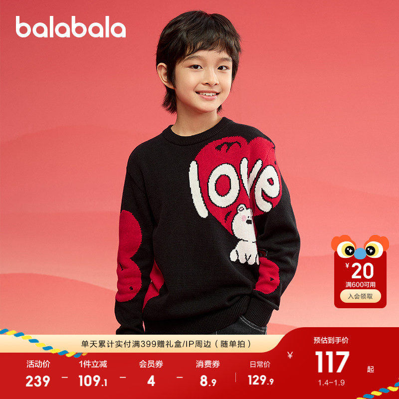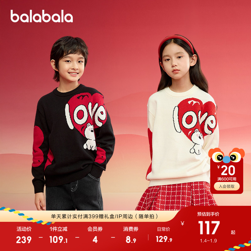 巴拉巴拉童装儿童毛衣男童女童春秋2025新款亲子套头针红色拜年服