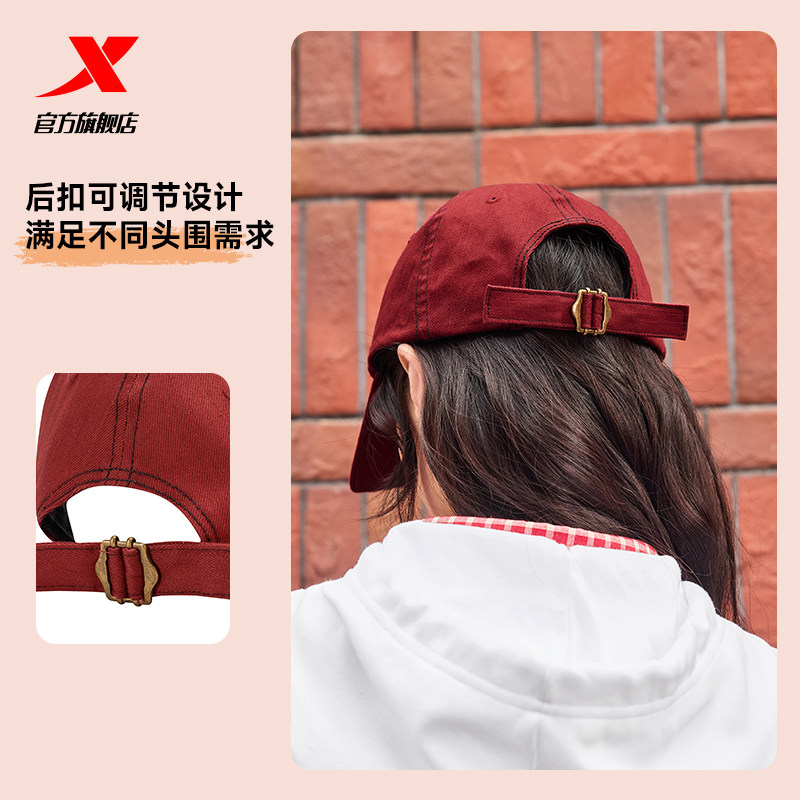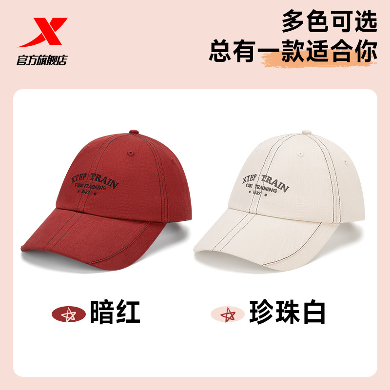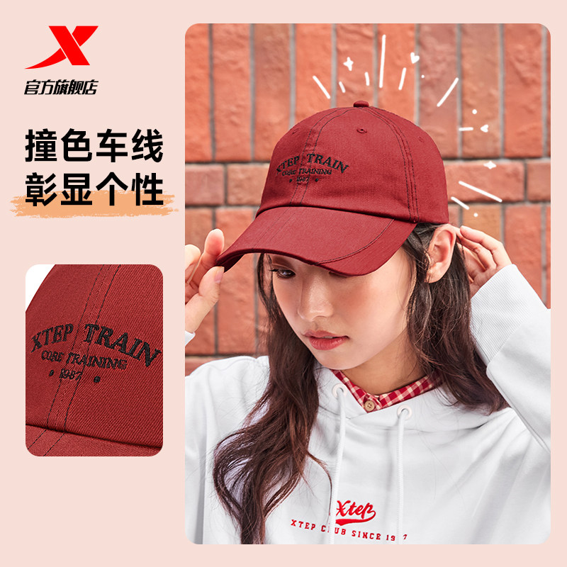 特步棒球帽女款百搭帽子男款鸭舌帽新年鸿运红色帽子休闲运动帽