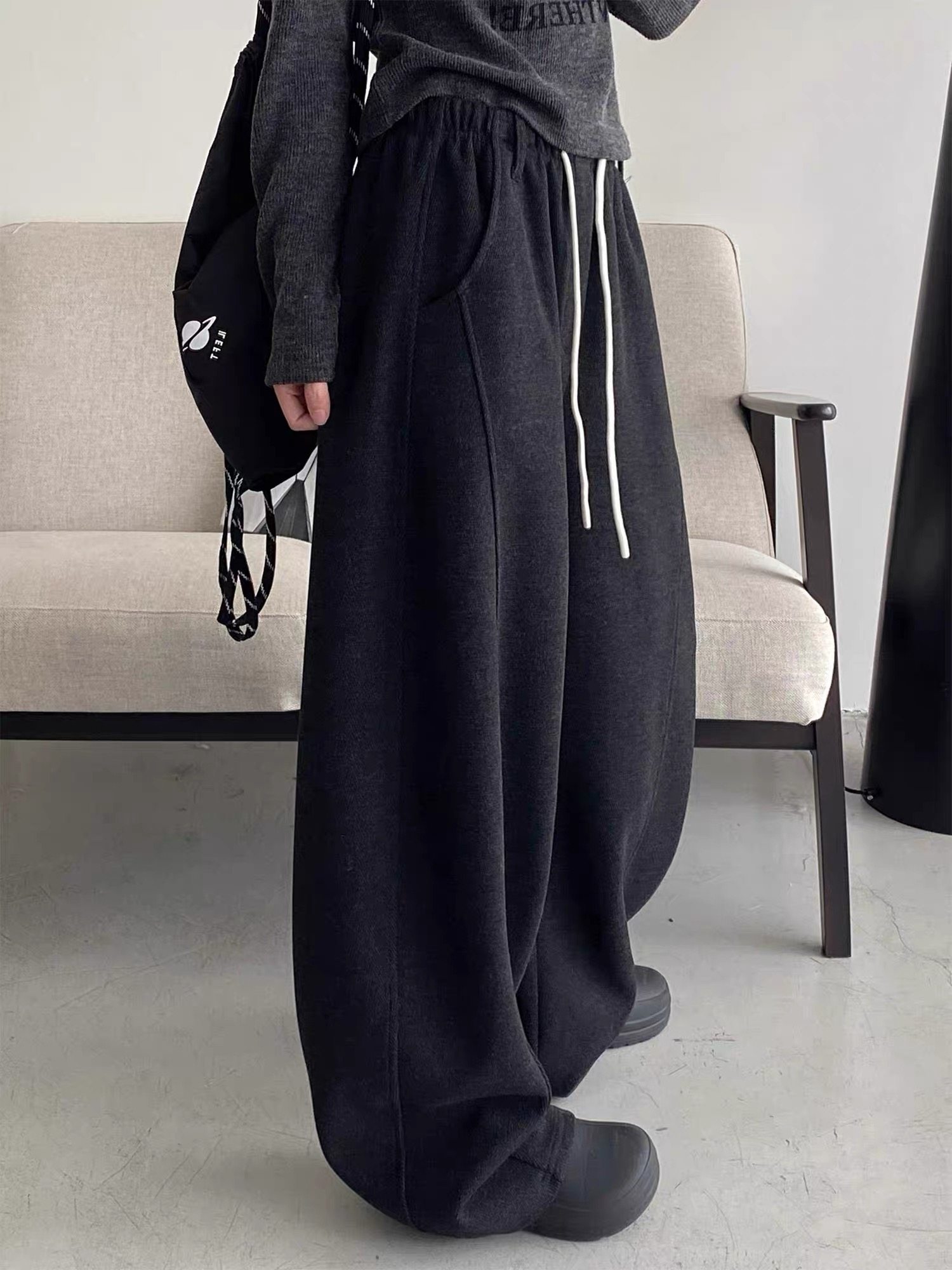 XZ8371冬季2025加绒垂感阔腿裤百搭系带松紧腰宽松休闲显瘦弯刀裤