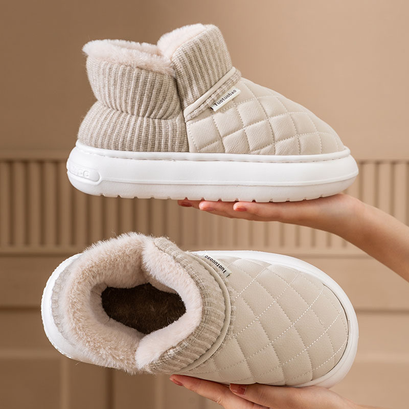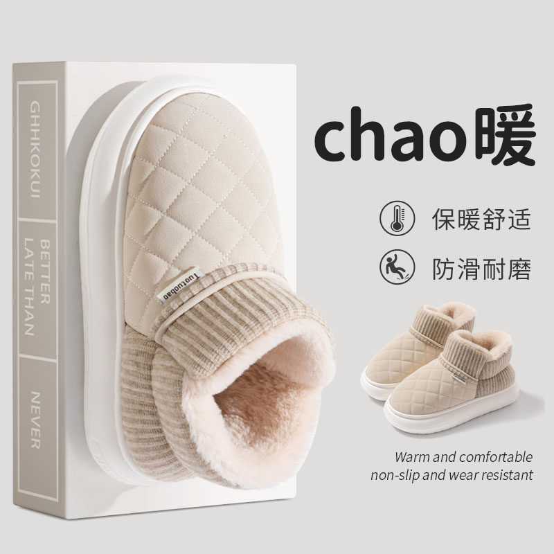 红豆踩屎感棉拖鞋女士秋冬季室内家居2025新款毛绒保暖情侣棉拖男