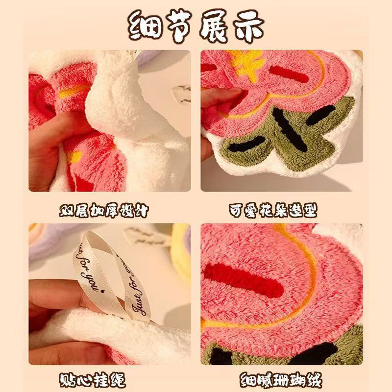 有钱花可爱擦手巾厨房卫生间可挂式吸水速干抹手巾加厚不掉毛手帕