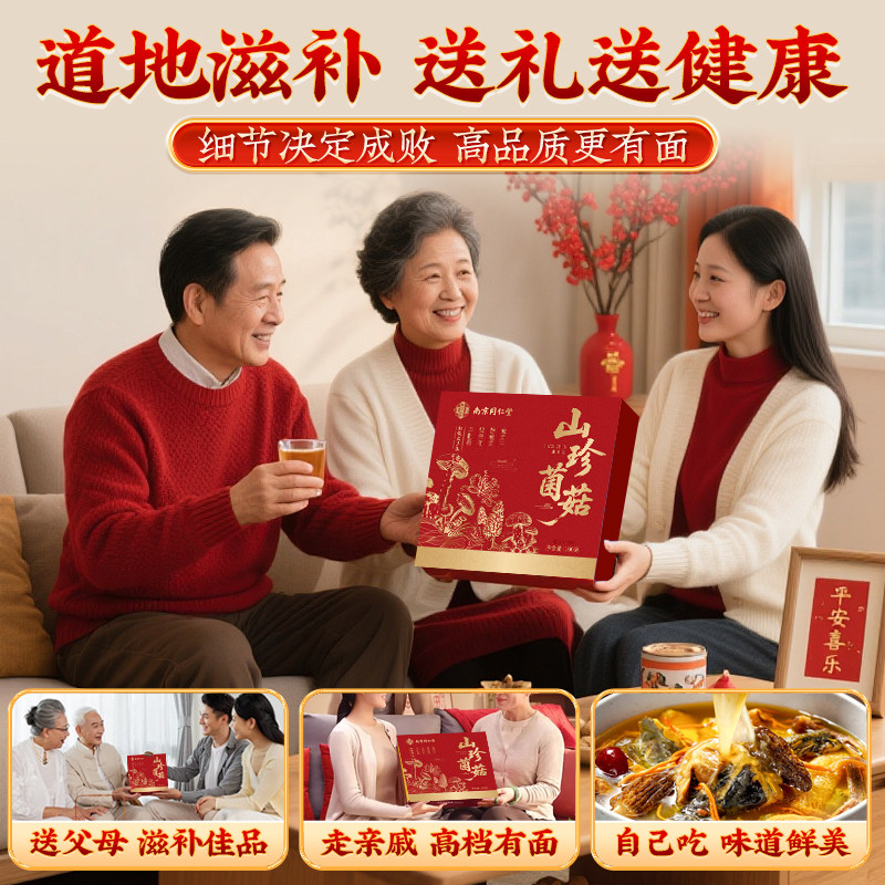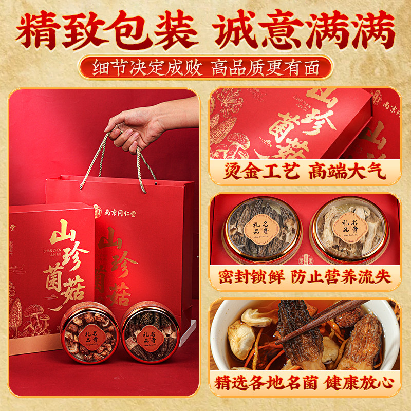 南京同仁堂菌菇礼盒年货送长辈山珍干货野生羊肚菌虫草花煲汤实用