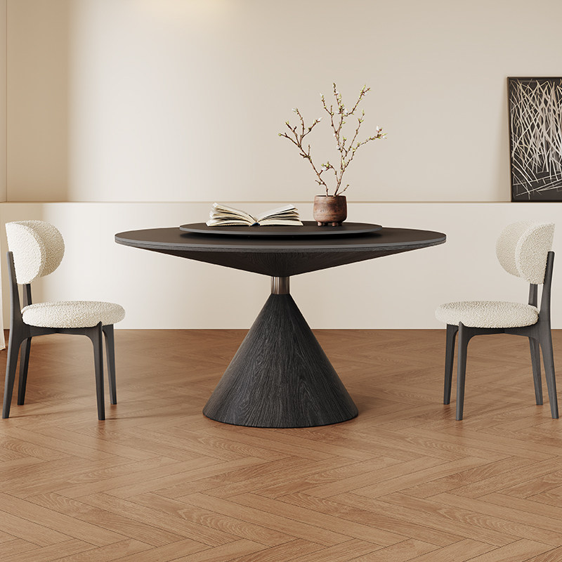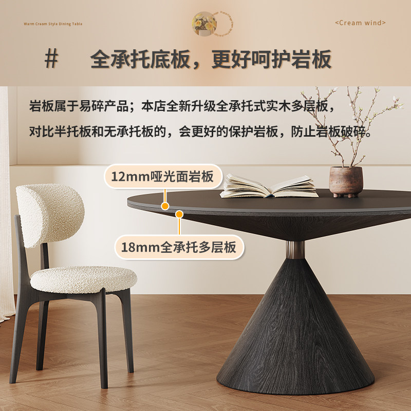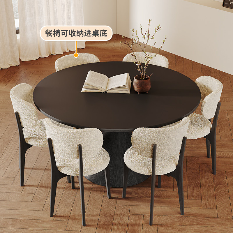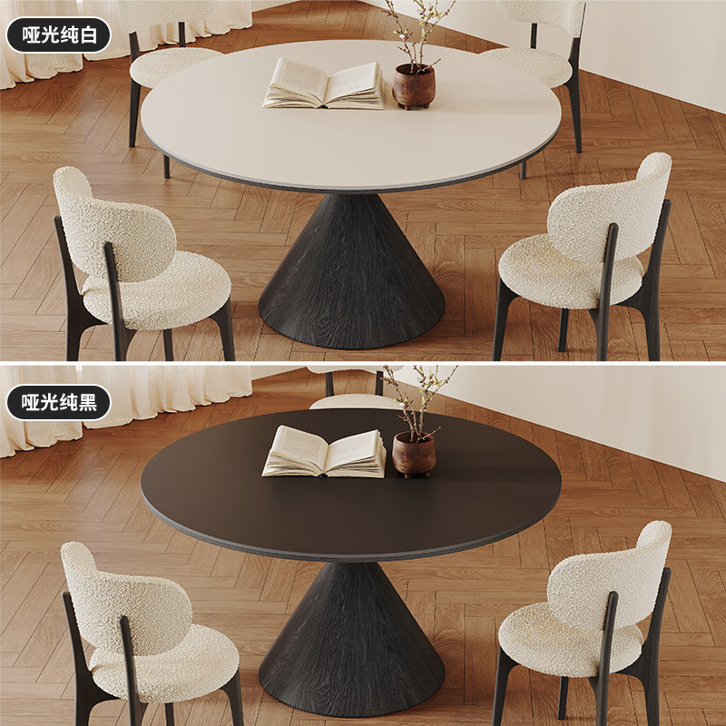 实木圆形餐桌纯黑带转盘小户型现代简约高端飞碟极简纯白岩板餐桌