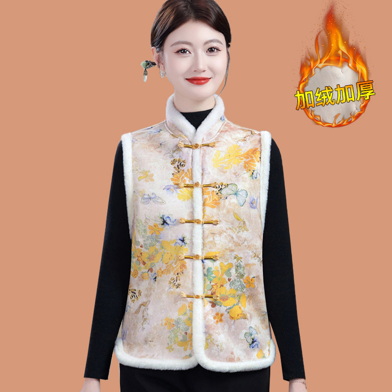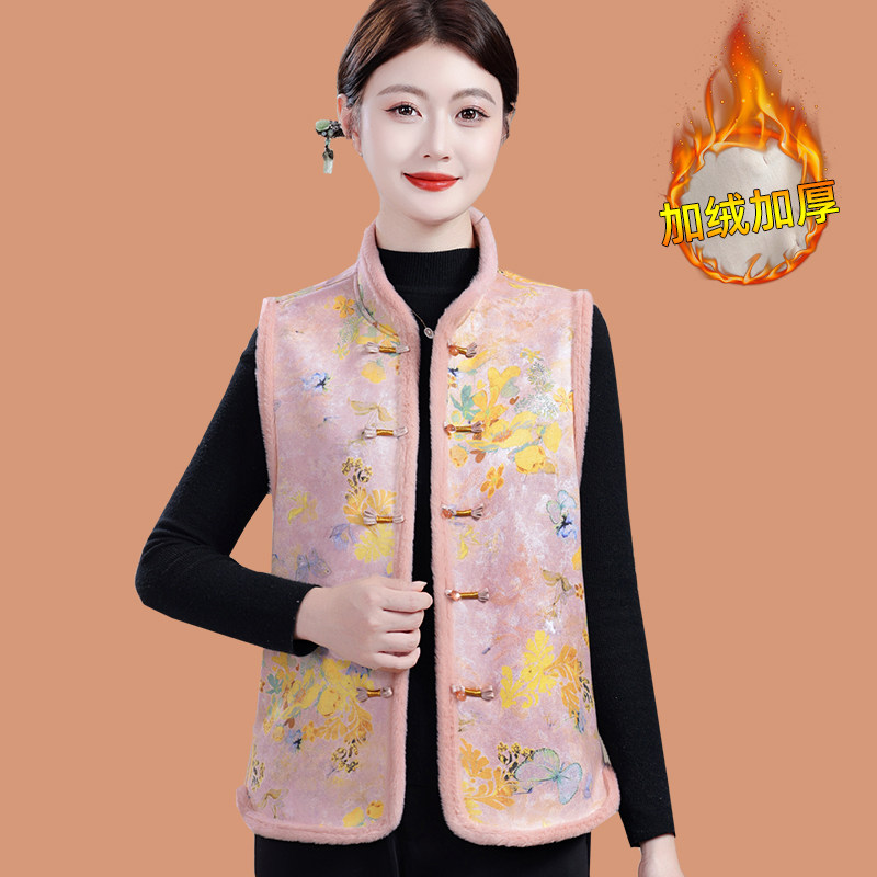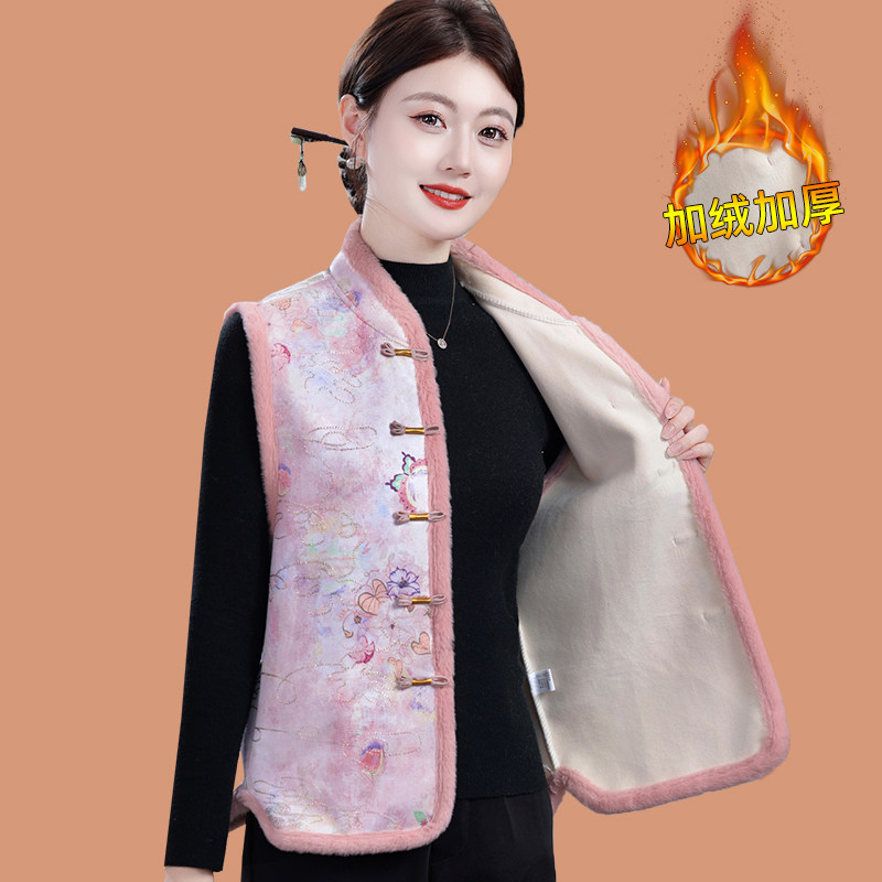 新中式妈妈秋冬加绒盘扣马甲中老年奶奶冬装国风保暖坎肩马夹外套