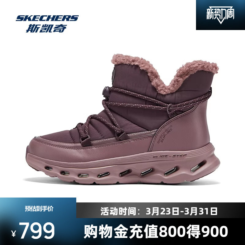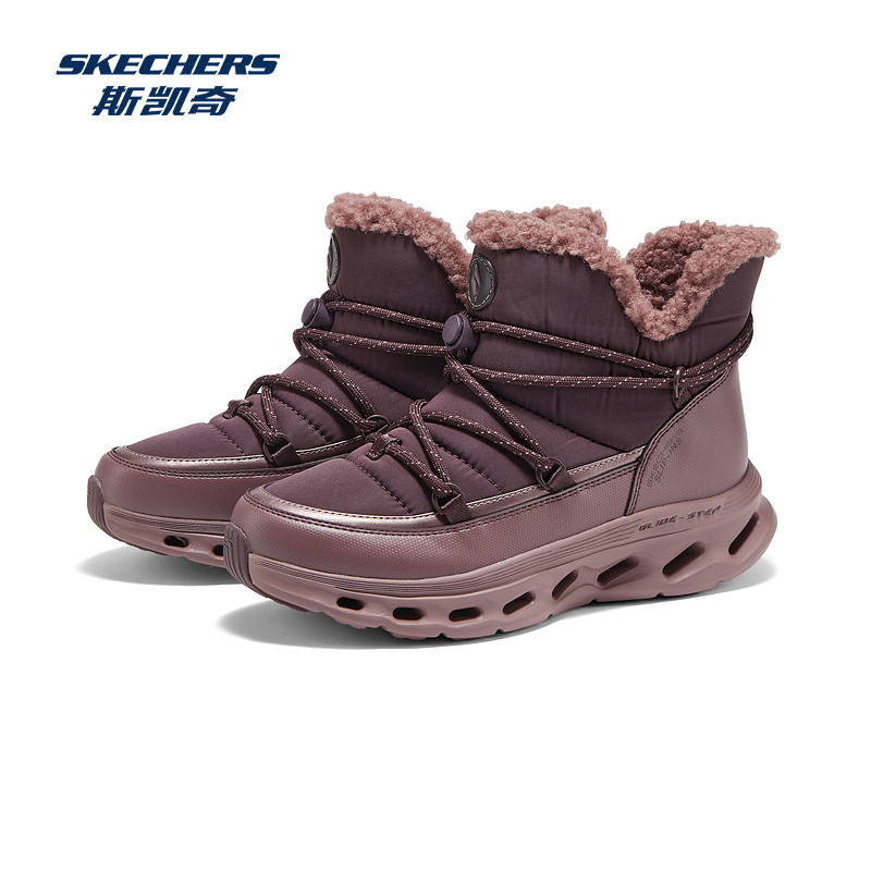 斯凯奇雪地靴女秋冬新款中帮舒适保暖减震耐磨厚底系带休闲靴靴子