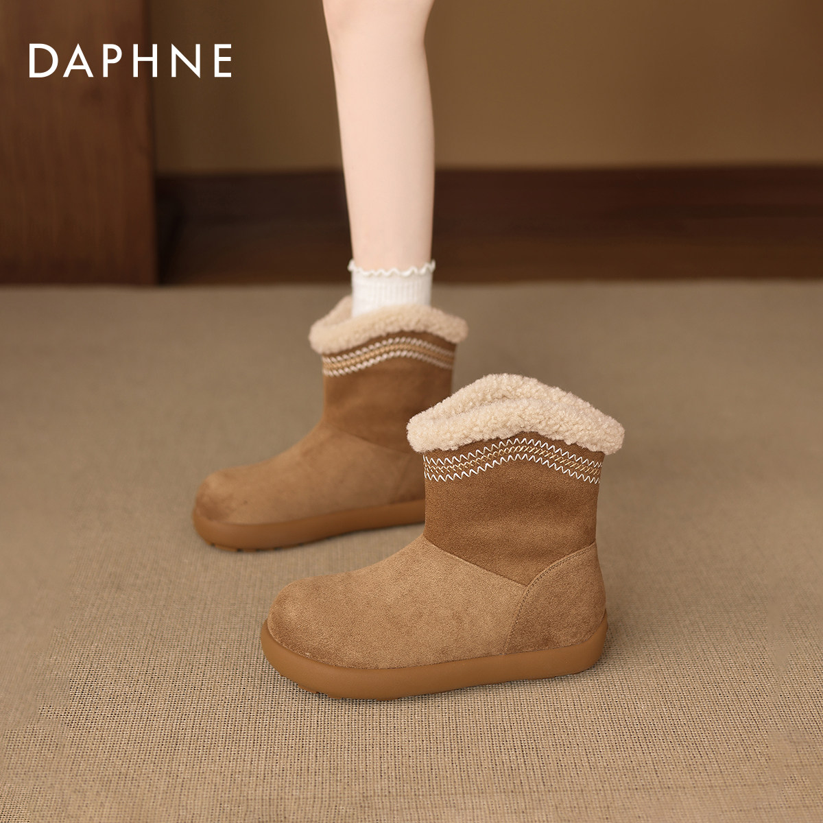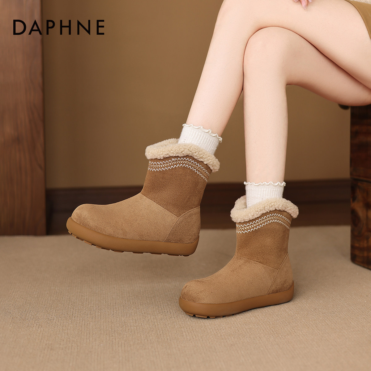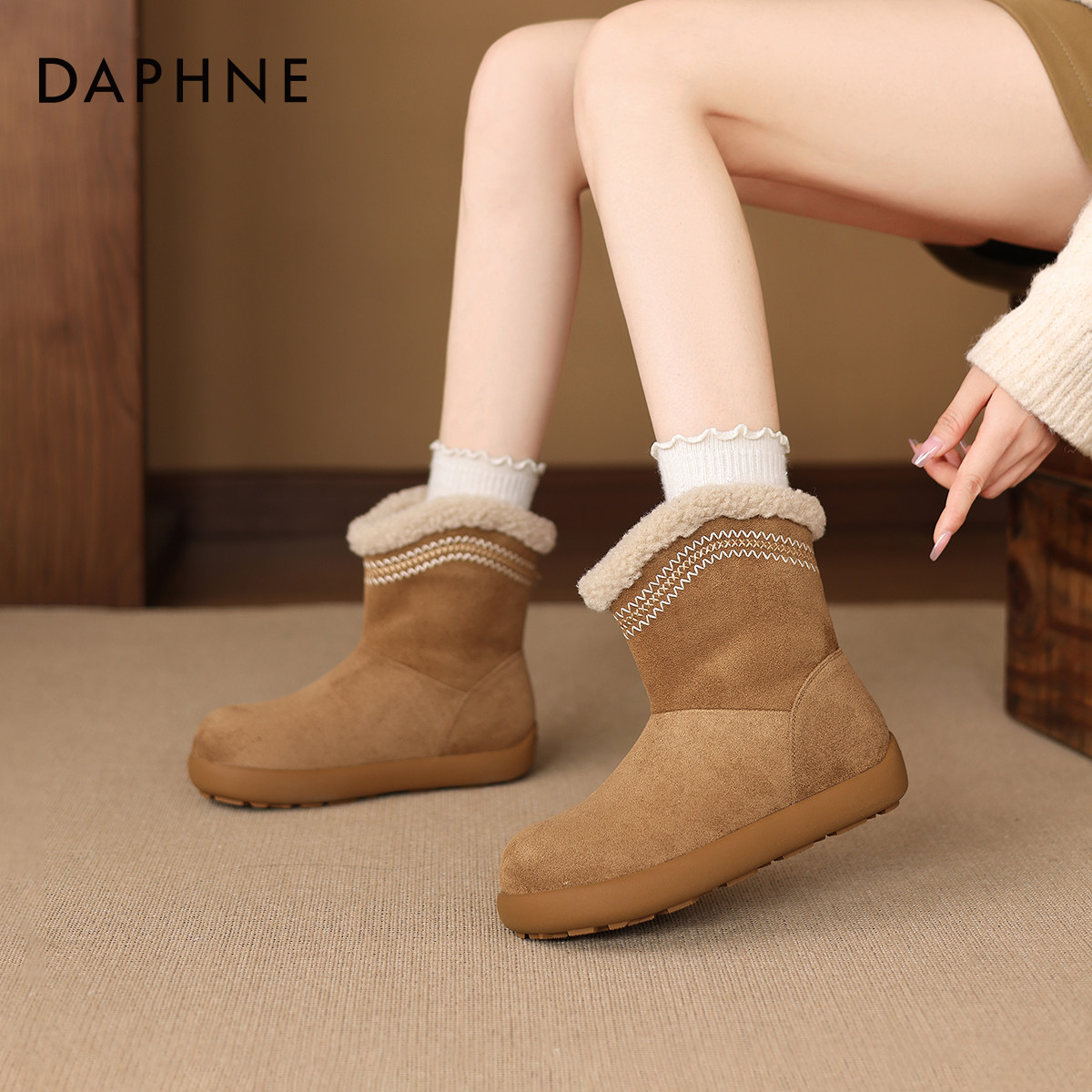 达芙妮厚底雪地靴女款2026新款冬季加绒保暖棉鞋加厚毛毛东北棉靴