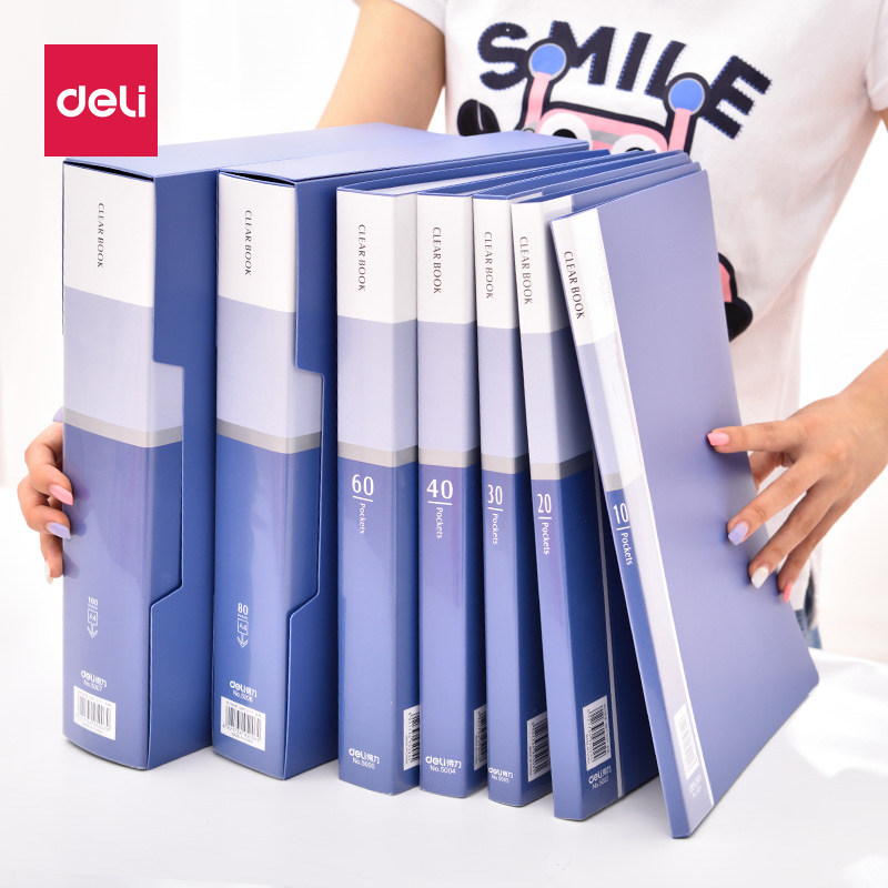 得力A4资料册活页文件夹插页20/30/40/60/80/100页资料册A4文件册资料夹a4透明钢琴谱夹分页档案多页夹试卷袋