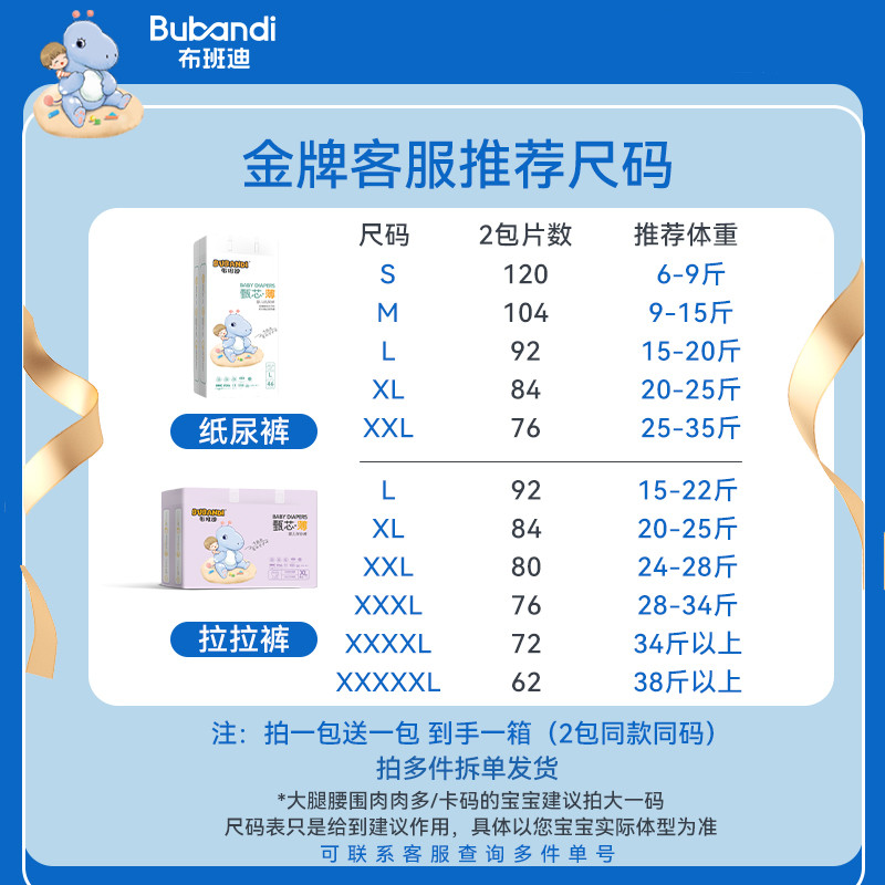布班迪超薄透气纸尿裤婴儿拉拉裤xl新生儿s尿不湿男女宝宝专用3xl