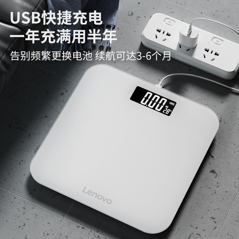 Lenovo联想体重秤家用精准电子秤充电款宿舍高精度小型人体称重计