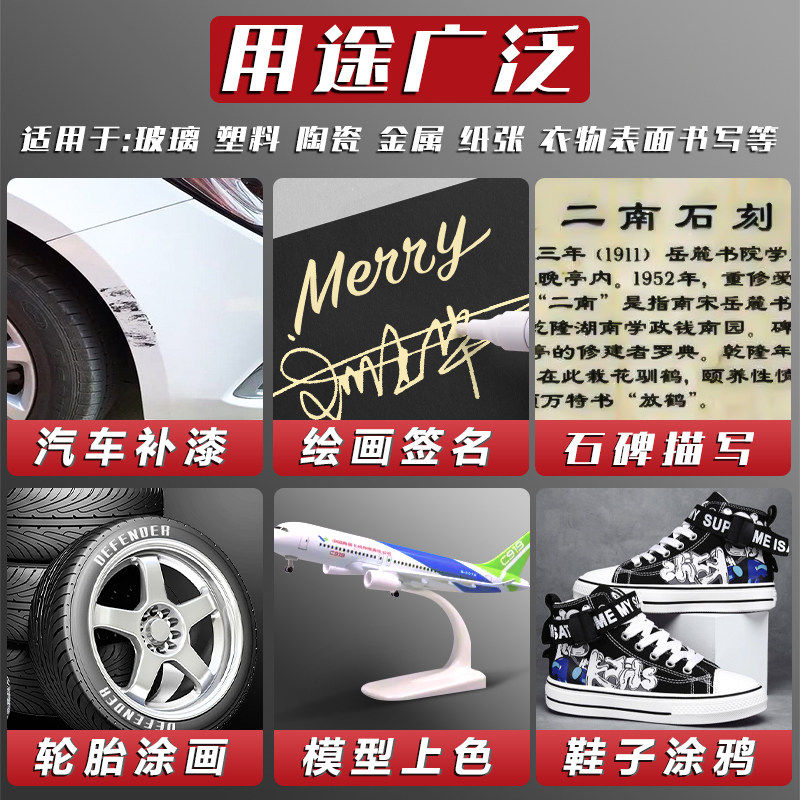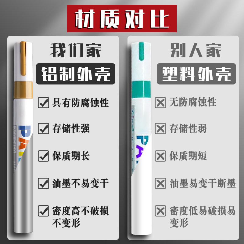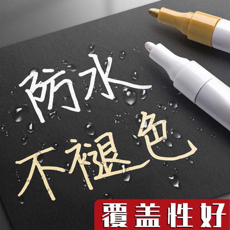 油漆笔DIY白色记号笔补漆笔防水防油不掉色金色银色涂鸦笔油性笔彩色工业汽车专用黑色速干白漆笔轮胎红色笔