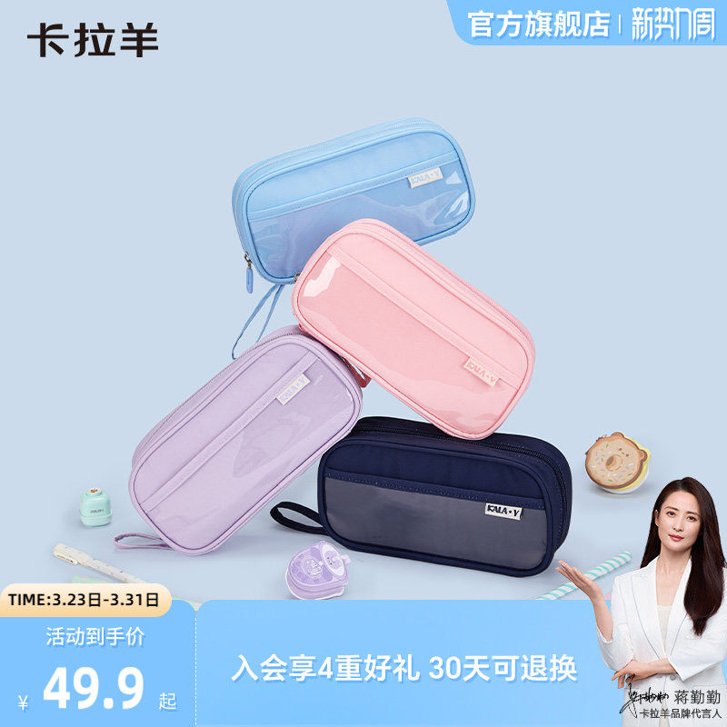 卡拉羊轻自重大容量多隔层文具盒轻便防水笔袋耐磨抑菌分区收纳笔袋