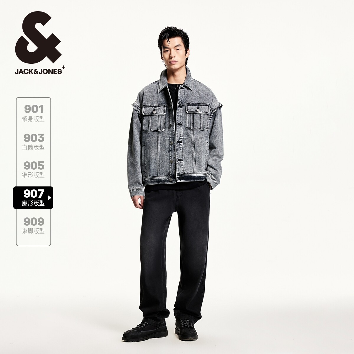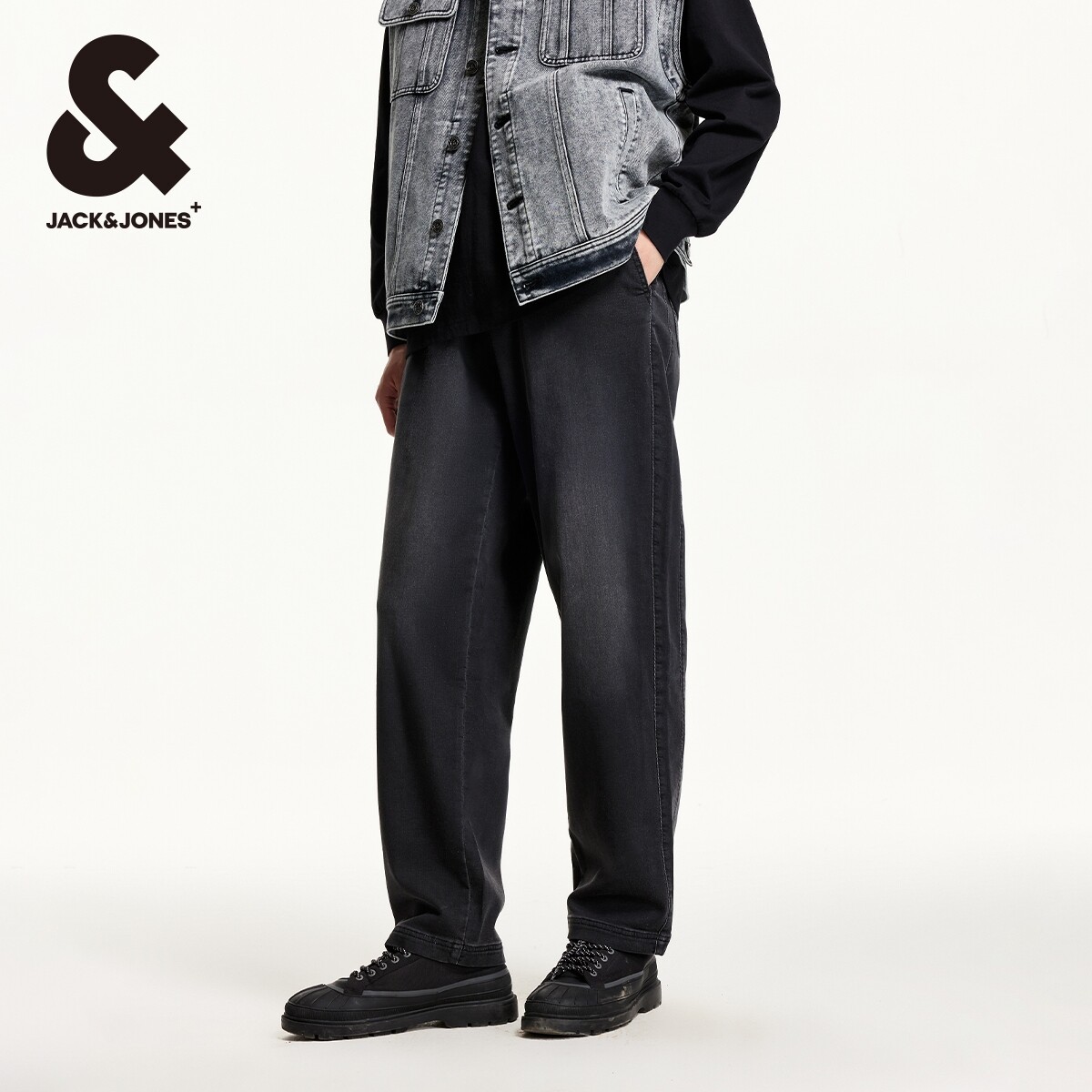 907杰克琼斯男装阔腿裤水洗廓形松紧腰头男士牛仔裤长裤子春季