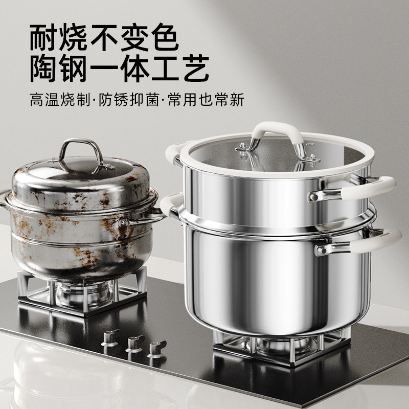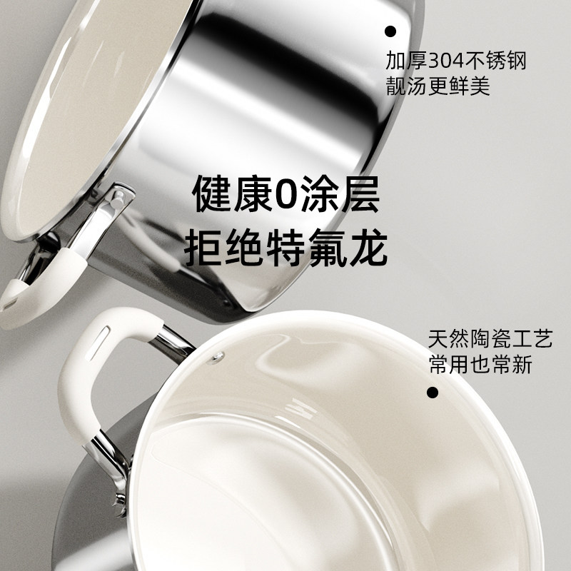 加厚陶瓷不锈钢食品级汤锅家用双耳电磁炉燃气专用煮粥煲蒸炖煮锅