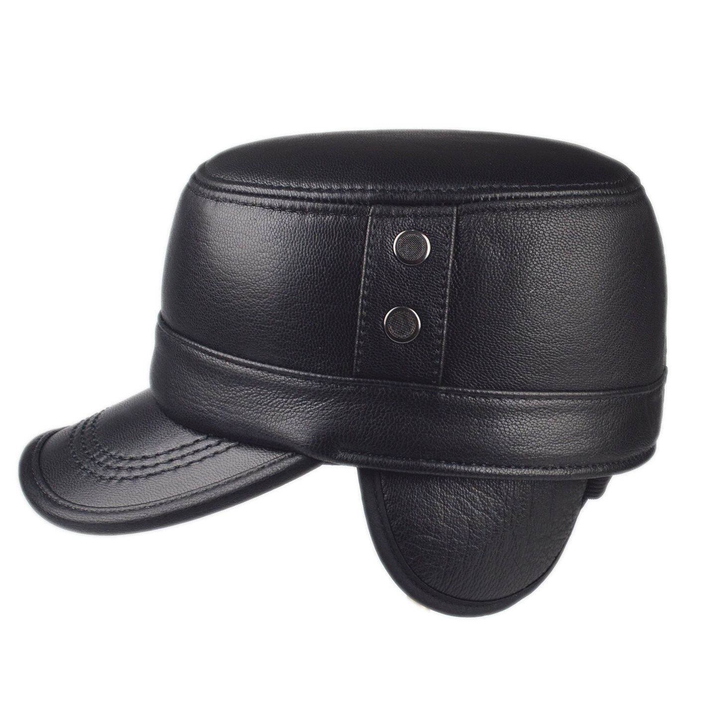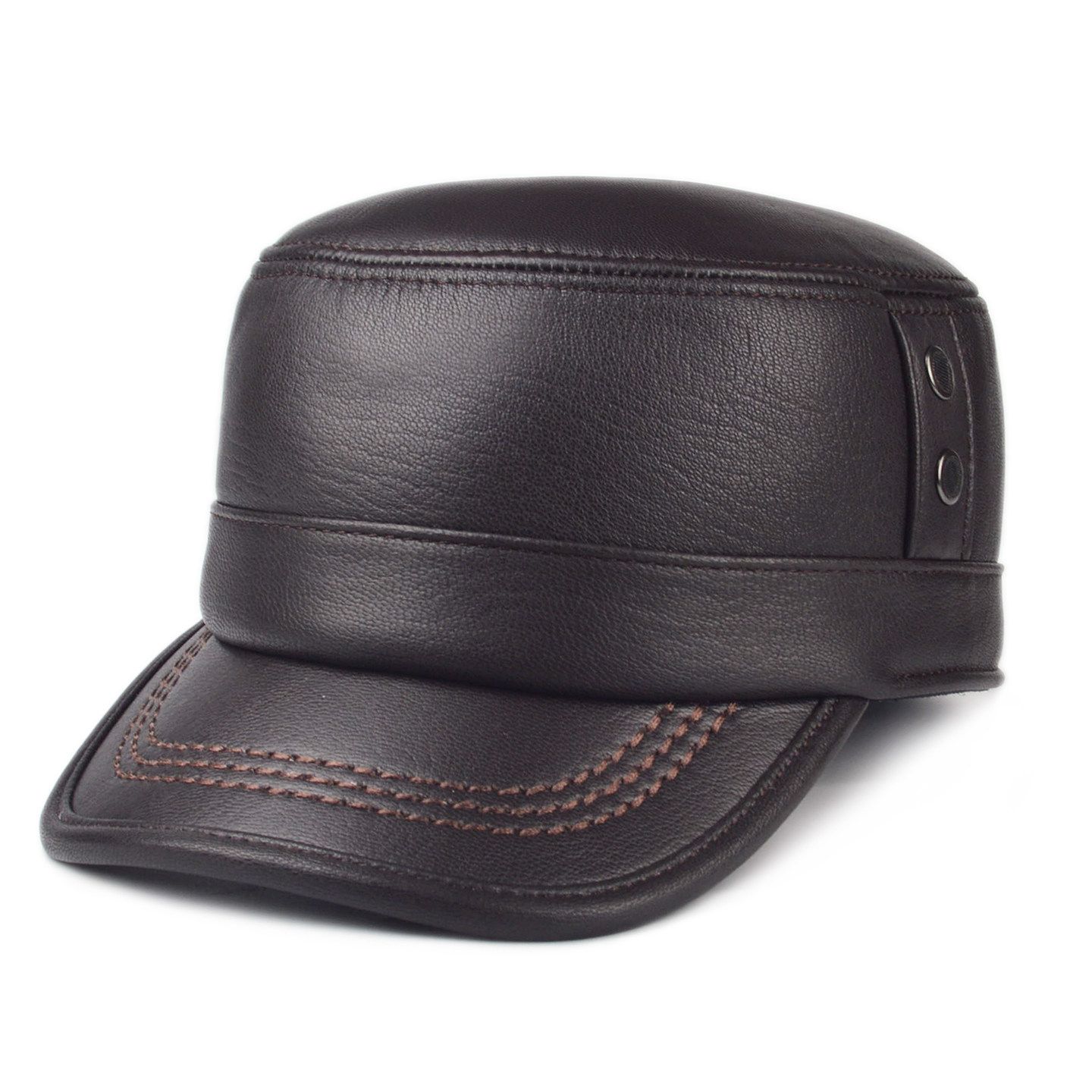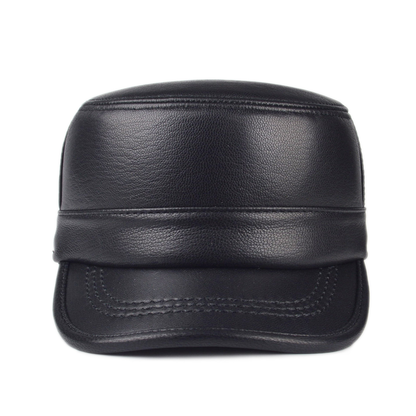秋冬季新款加绒真皮帽子男士羊皮平顶帽休闲中老年人鸭舌帽爸爸潮