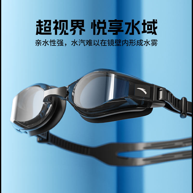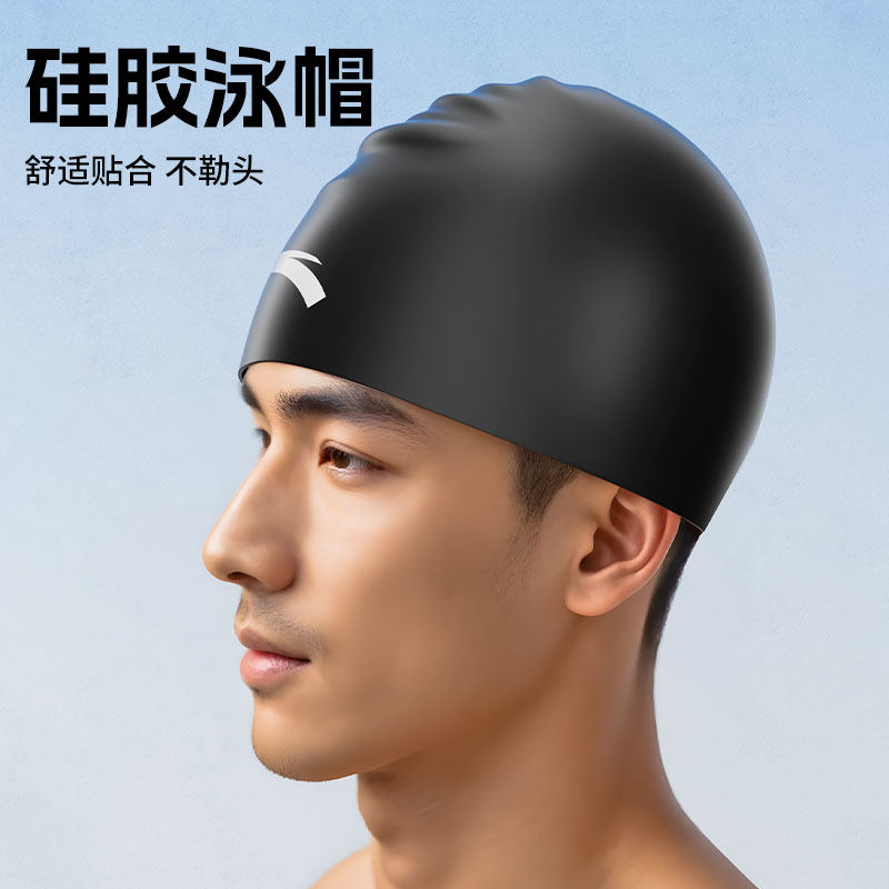 安踏男游泳套装新款泳裤泳帽泳镜三件套黑色防晒亲肤透气速干泳衣