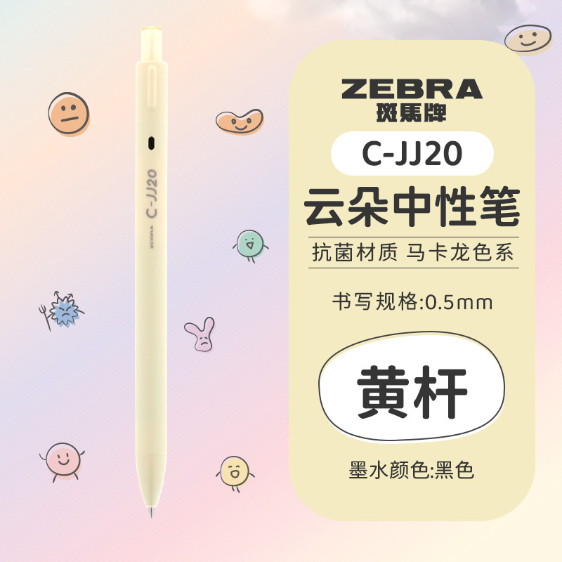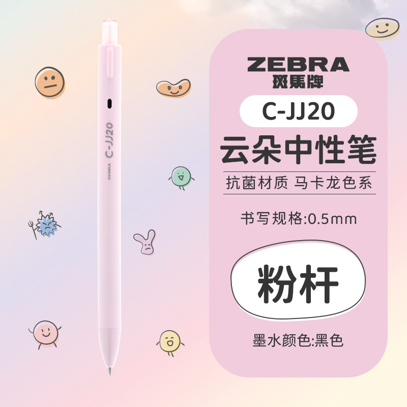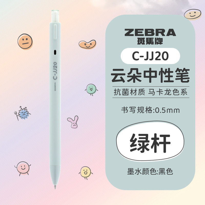 日本zebra斑马JJ20云朵中性笔 按动式抗菌刷题 0.5学习书写大容量黑笔子弹头 马卡龙学生笔