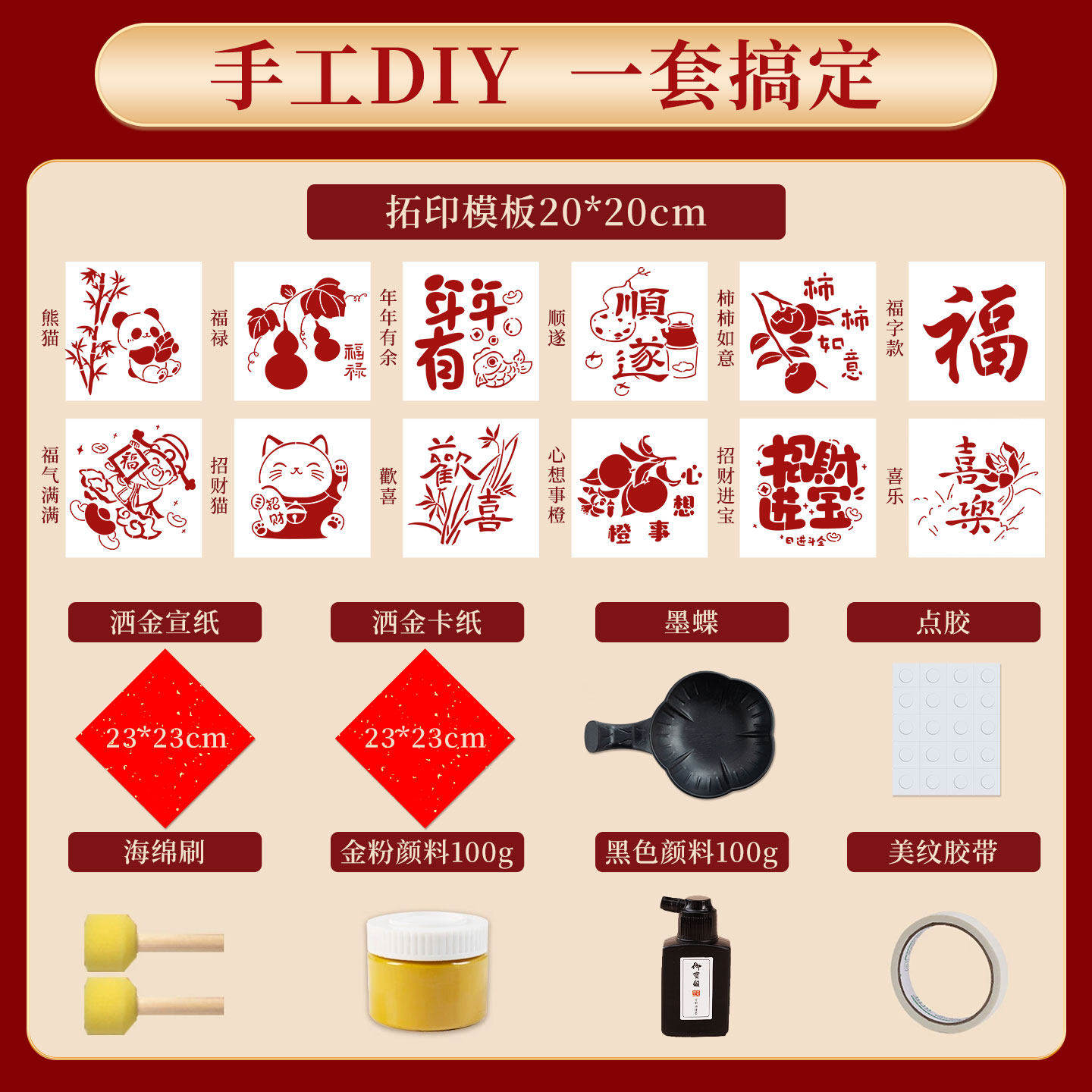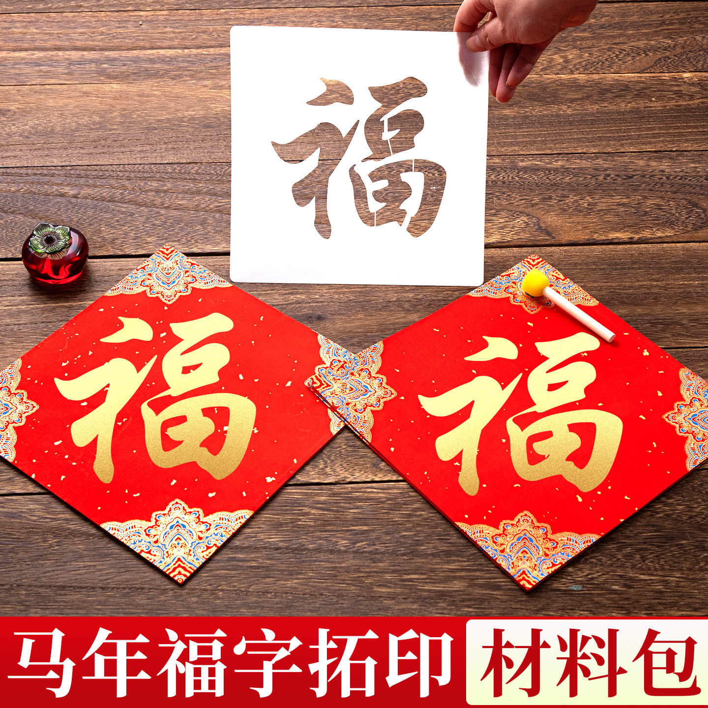 马年福字拓印材料包工具套装2026新年手工diy模板幼儿园儿童涂鸦模具春节年画非遗镂空蜡染宣纸过年洒金红纸
