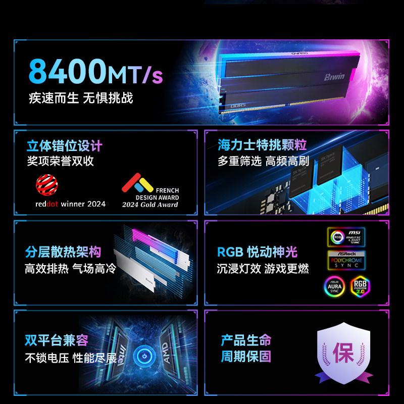 佰维DW100 DDR5台式机RGB内存条16G*2/24G*2套装6000频率c28时序