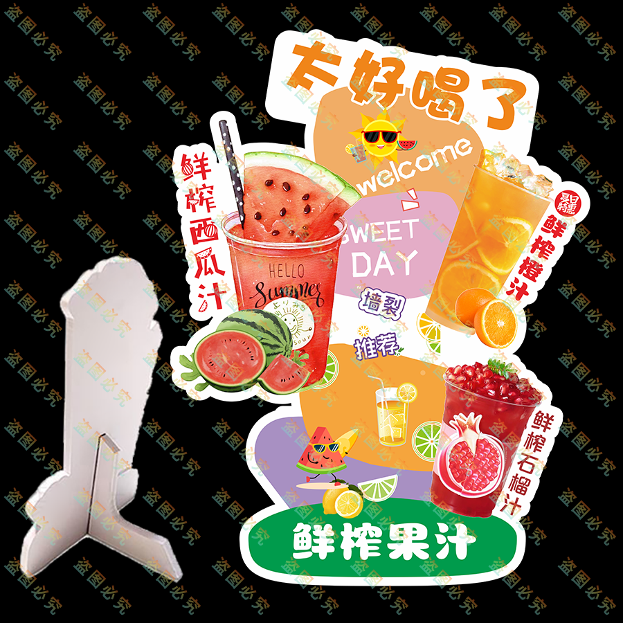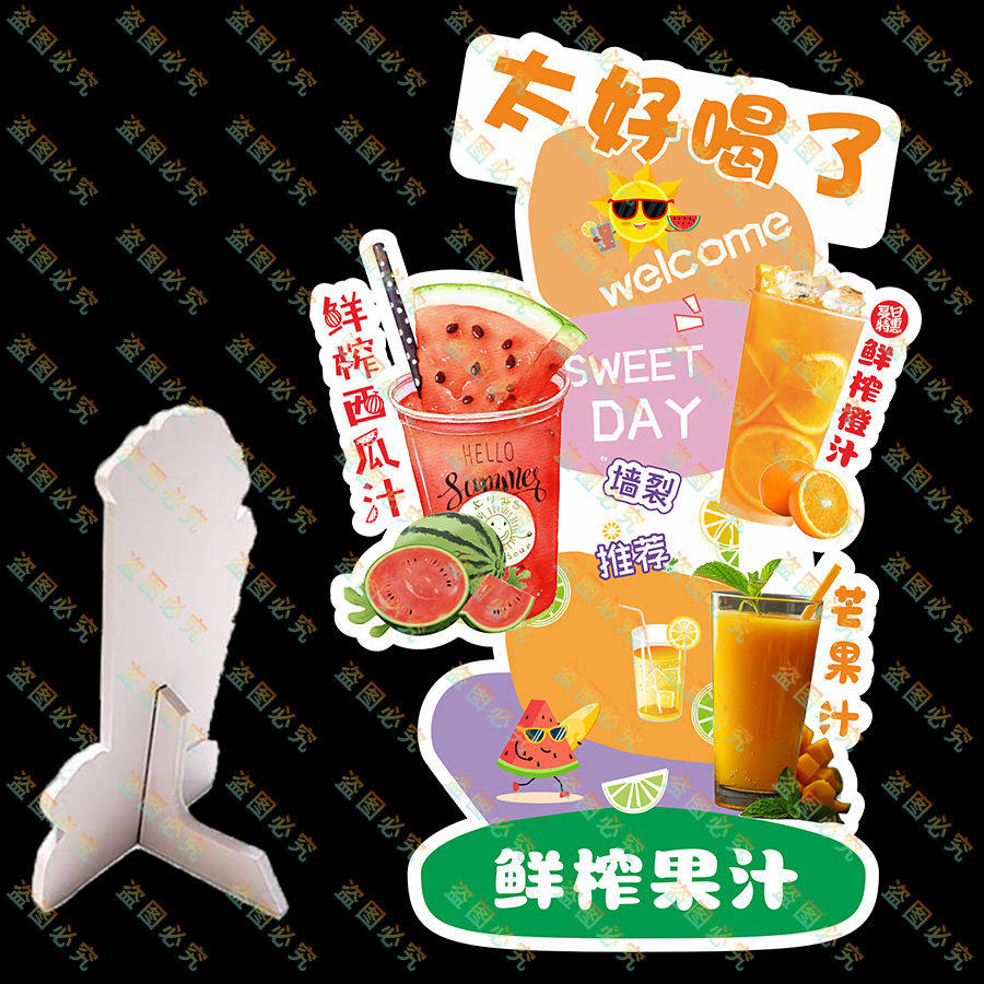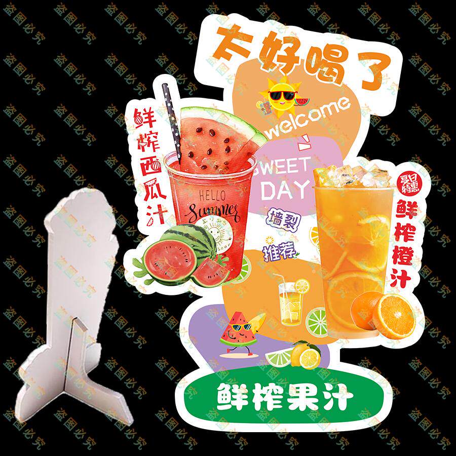 鲜榨果汁广告牌橙汁桌面立牌摆摊引流神器西瓜汁立式桌牌展示牌