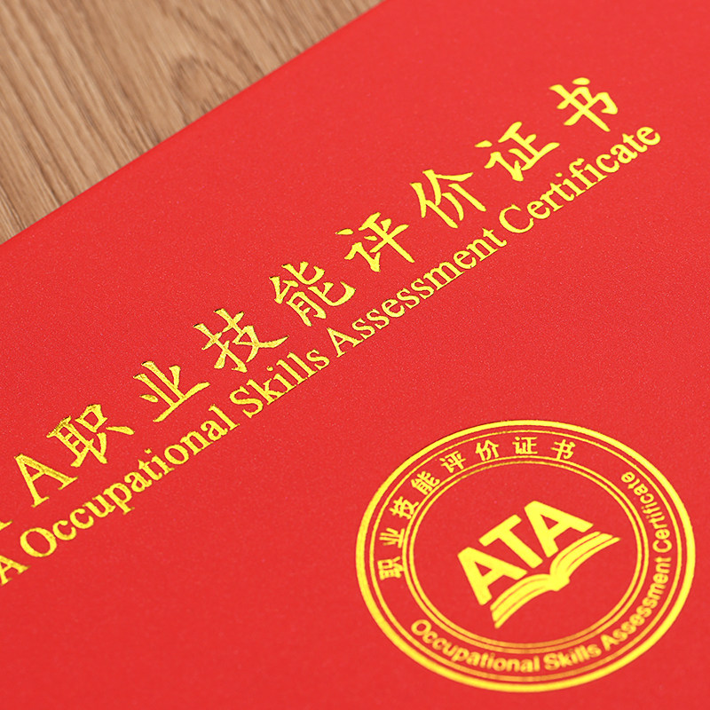ATA职业技能评价证书保护套中高初等级岗位培训合格证件外壳PS计算机软件ms office办公CAD设计技能人才封皮