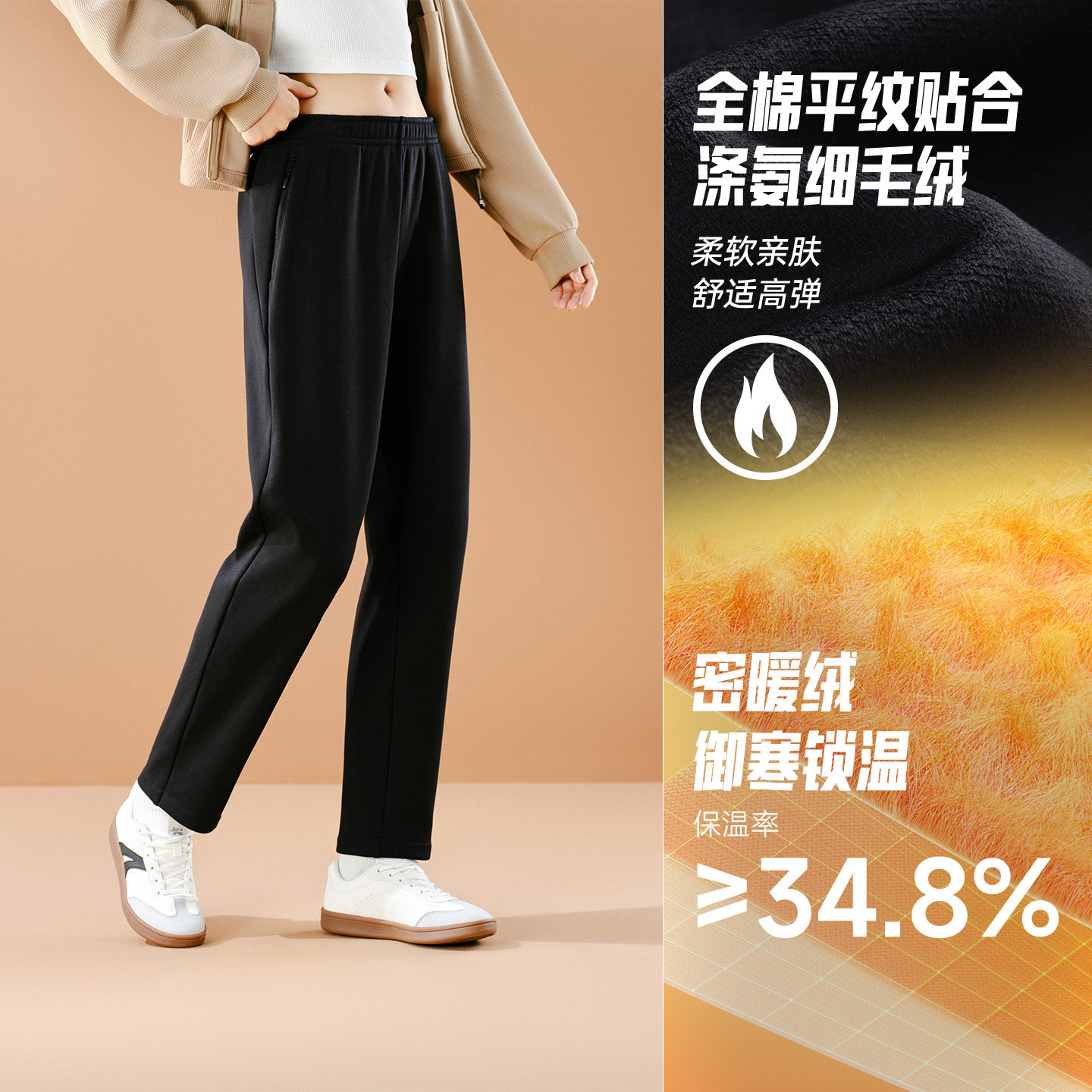 安踏自在裤丨运动长裤女冬季加绒保暖直筒卫裤跑步裤子162547305