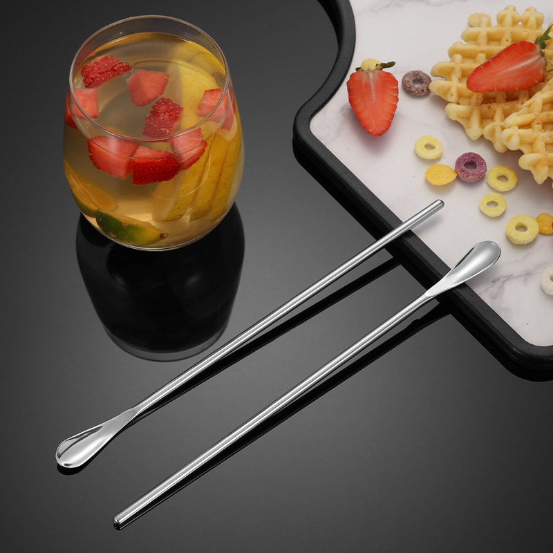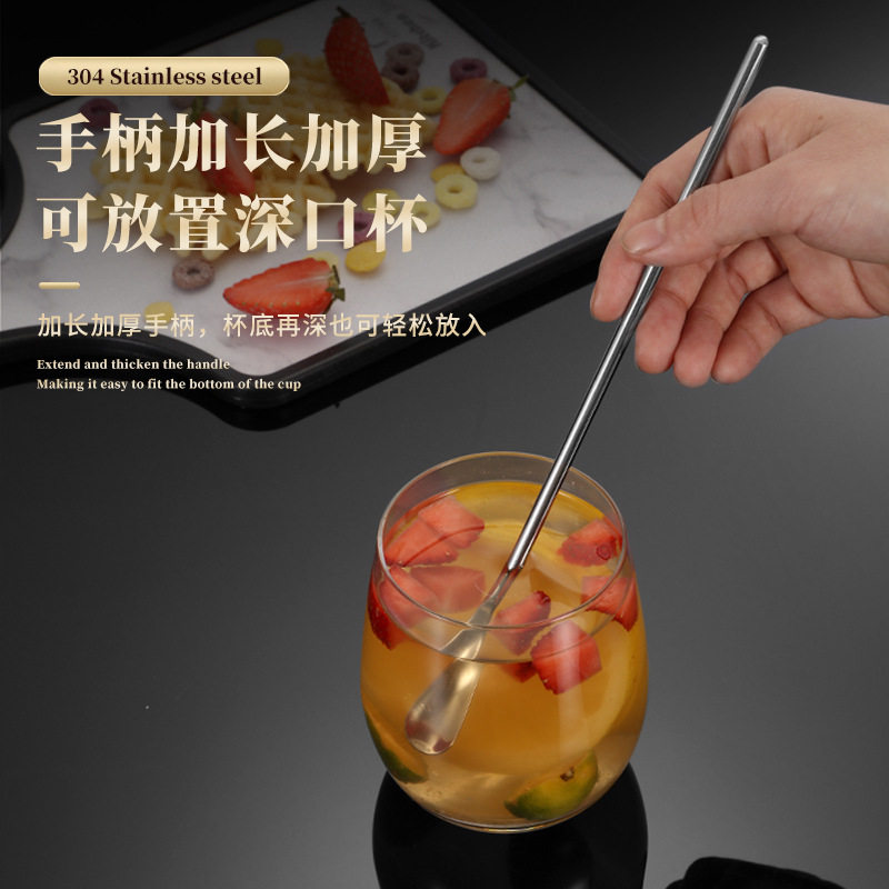韩式304不锈钢冰勺搅拌棒长圆柄咖啡奶茶调酒水滴吧勺餐具食品级