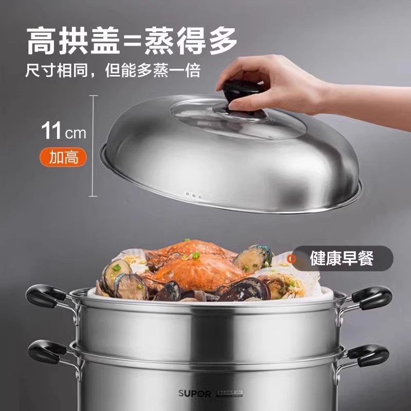 苏泊尔蒸锅304不锈钢家用蒸笼双层蒸煮两用大容量燃气电磁炉通用