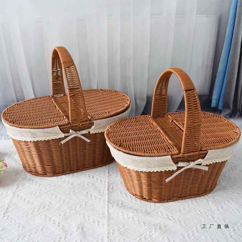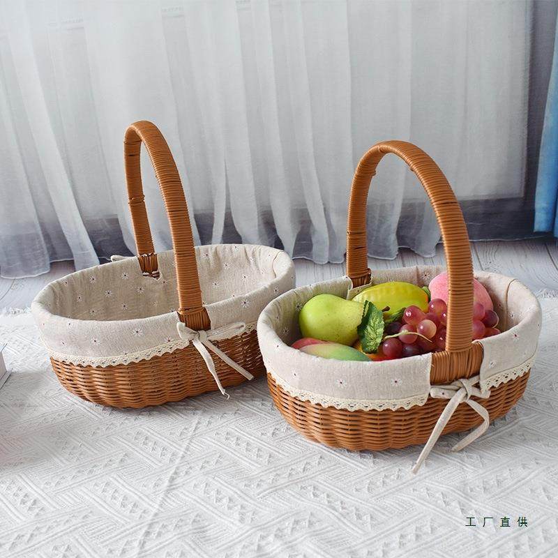 仿藤收纳篮花篮购物篮子藤编水果篮手提篮菜蓝野餐篮收纳筐鸡蛋篮