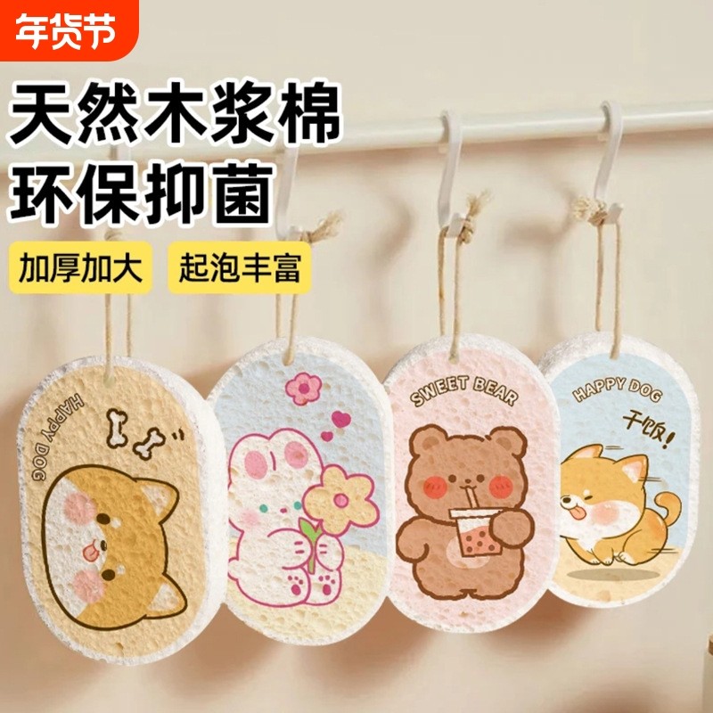 压缩木浆棉洗碗刷洗碗布加厚加大不沾油吸水海绵擦抹布不伤锅锅刷