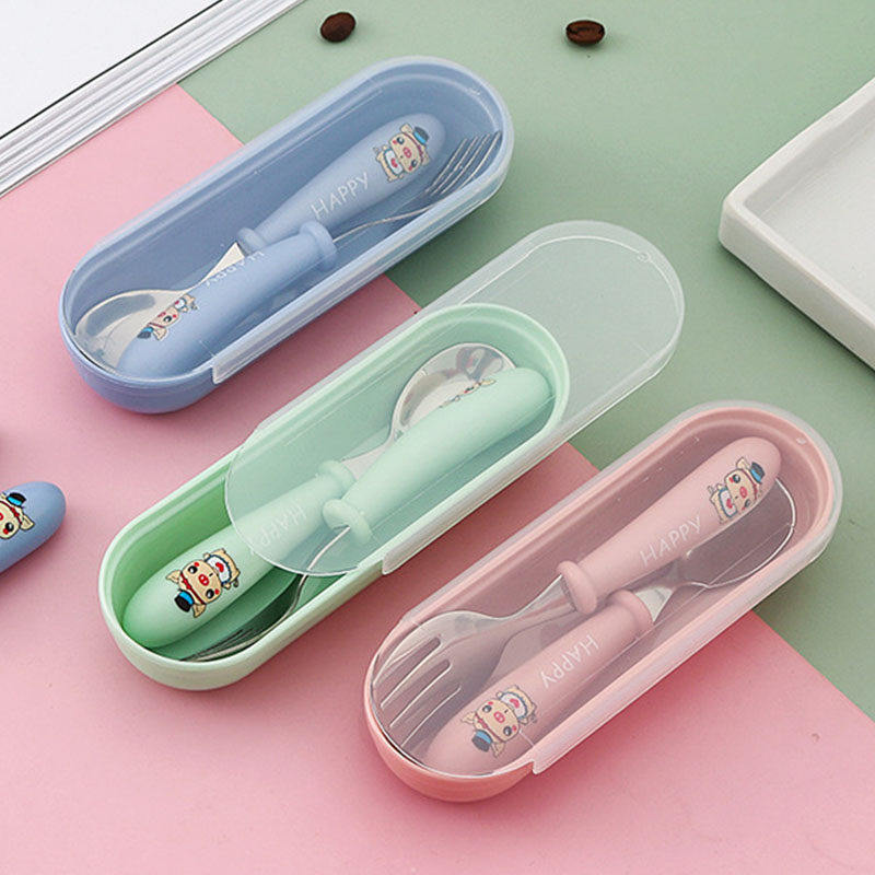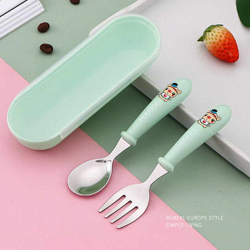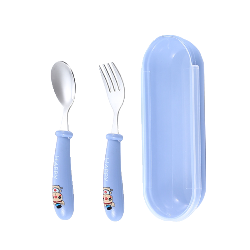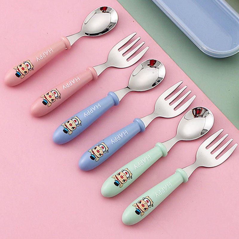 304不锈钢叉子勺子儿童餐具便携套装6宝宝学吃饭专用训练叉勺辅食
