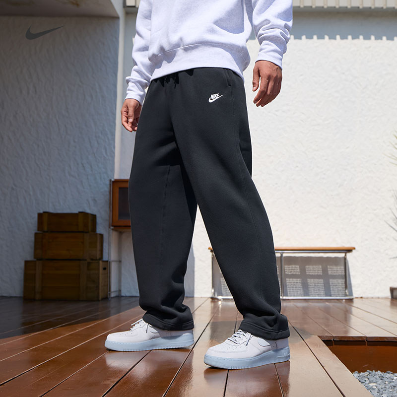 NIKE耐克男子加绒直筒裤秋冬新款休闲刺绣黑色针织长裤IF0489-010
