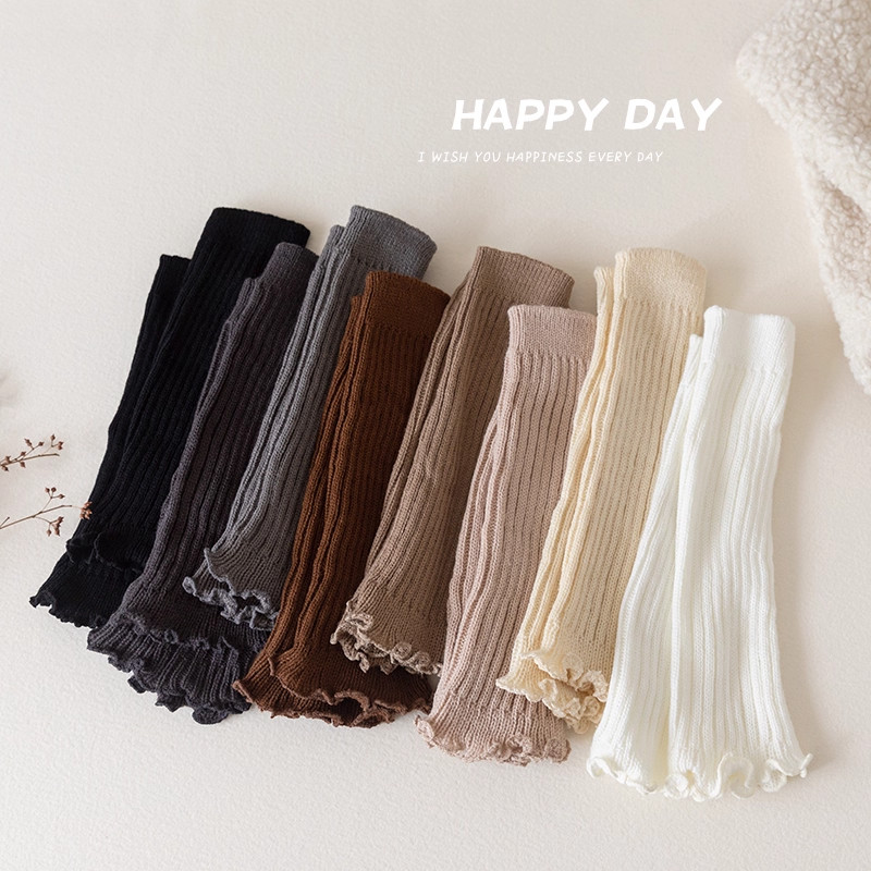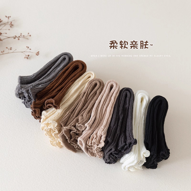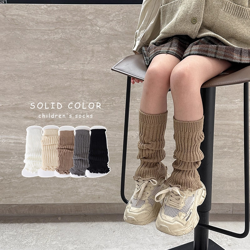 儿童袜套春秋女童韩版纯色百搭小腿套秋冬保暖女孩花边长筒堆堆袜