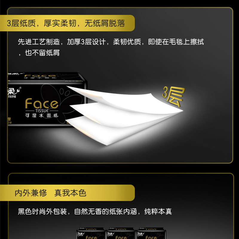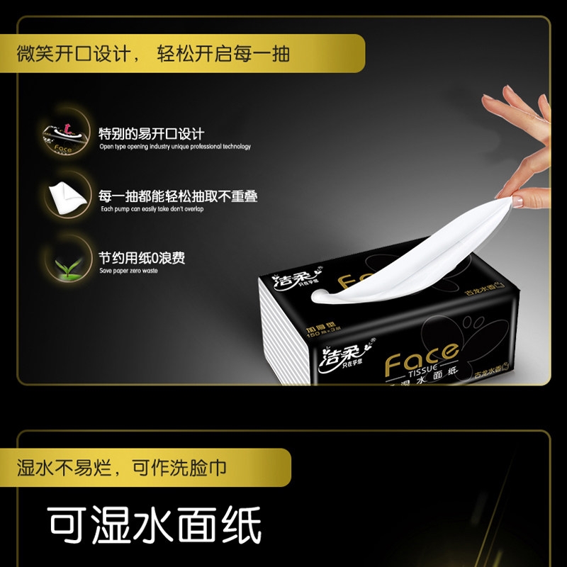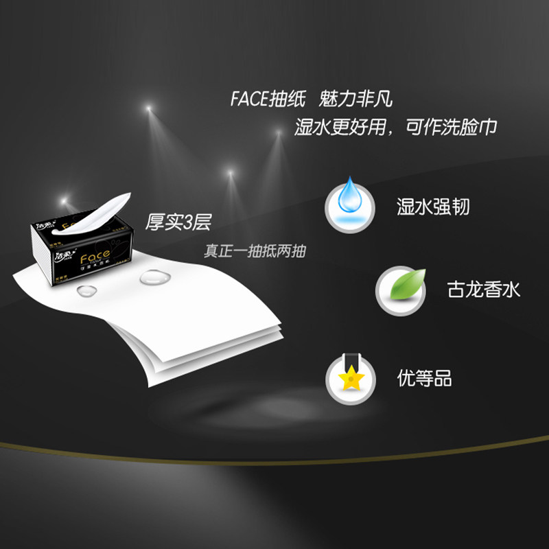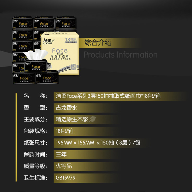 洁柔抽纸黑Face古龙水香味纸巾加量加厚大码面巾纸150抽卫生纸