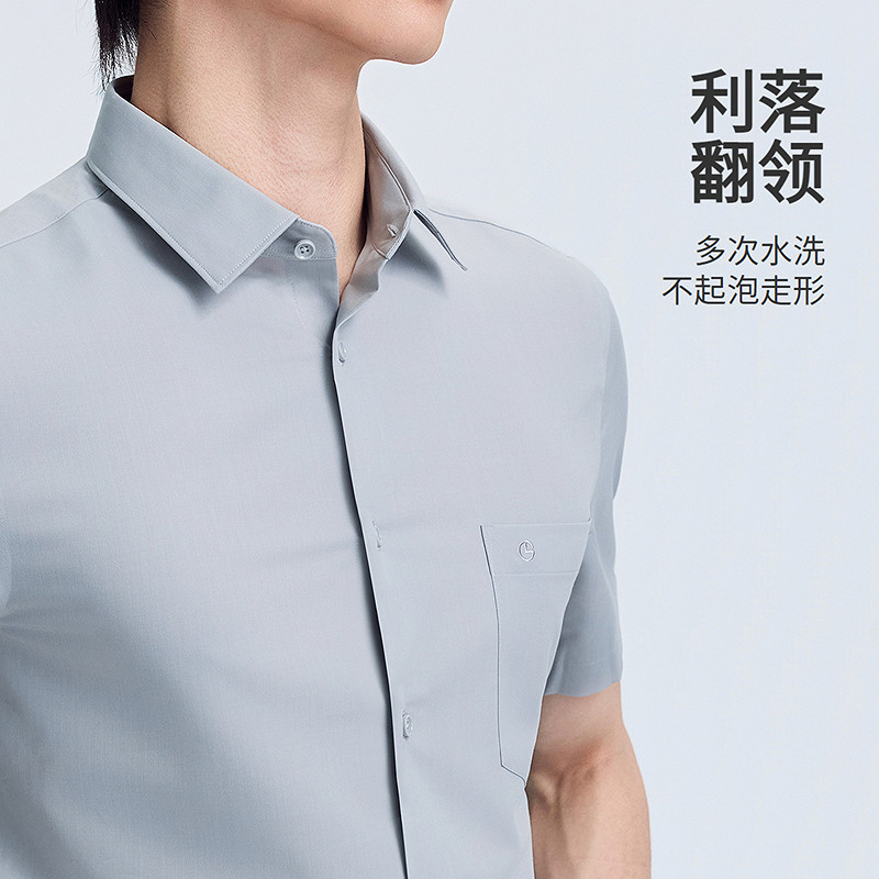 【透气弹力】金利来春夏新款男士白衬衫正装衬衫易打理短袖衬衣男