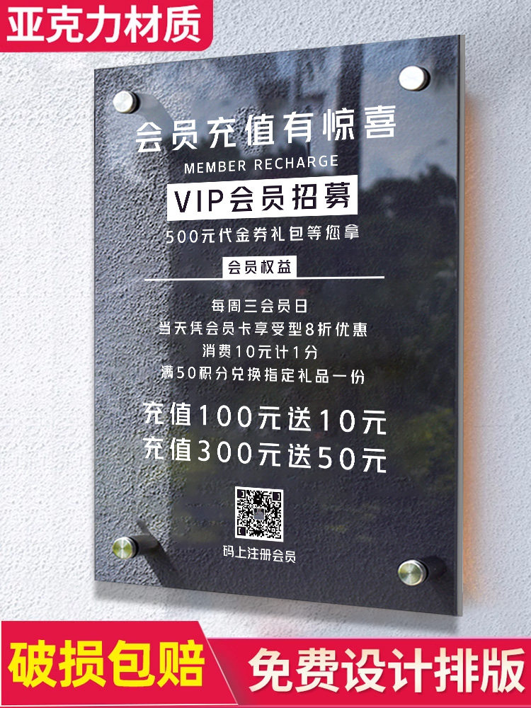 会员充值展示牌桌牌摆台vip充值广告牌美甲美睫充值挂牌ins风告示牌会员价目表理发店服装店价格牌台卡定制ZH