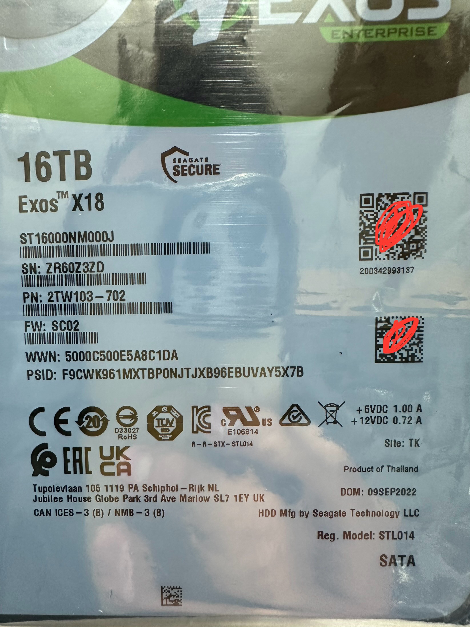 希捷 16T硬盘16TB EXOS X18银河监控机械硬盘企业级ST16000NM000J