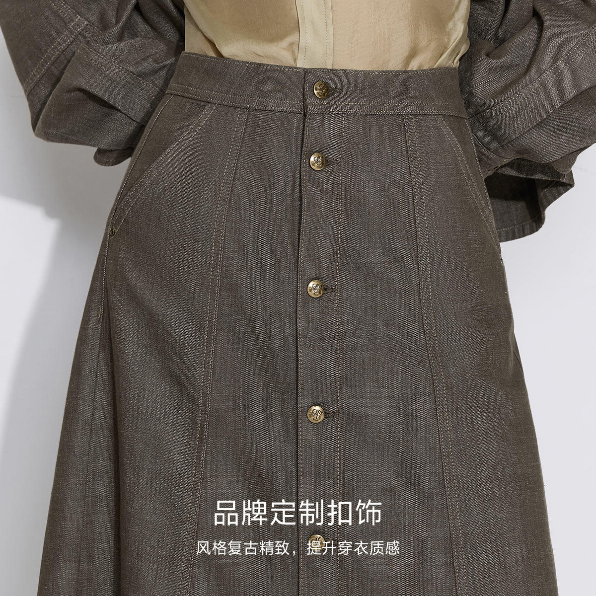 显瘦解构剪裁,品牌定制复古扣饰