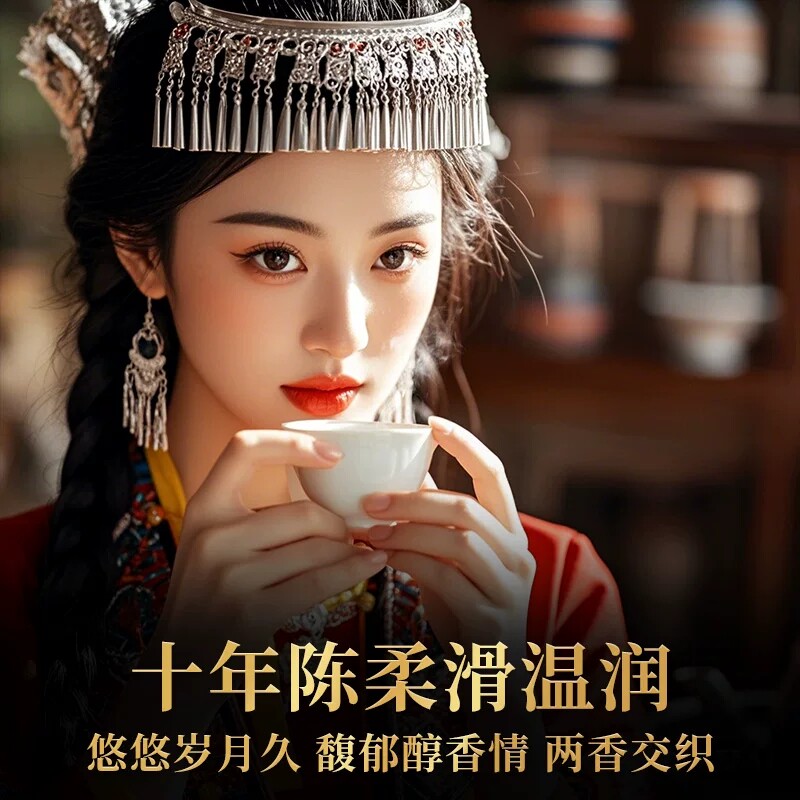 宫明茶叶 云南普洱茶熟茶糯米香小金砖普洱熟茶小圆饼320克礼盒装