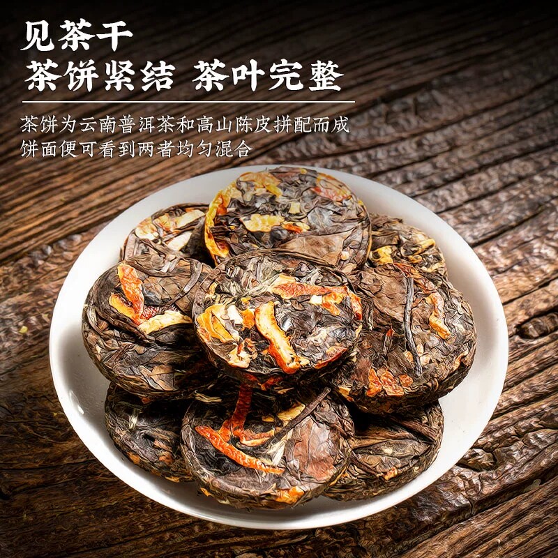 新会陈皮普洱茶熟茶正宗云南古树小方片普洱茶饼礼盒罐装茶叶500g