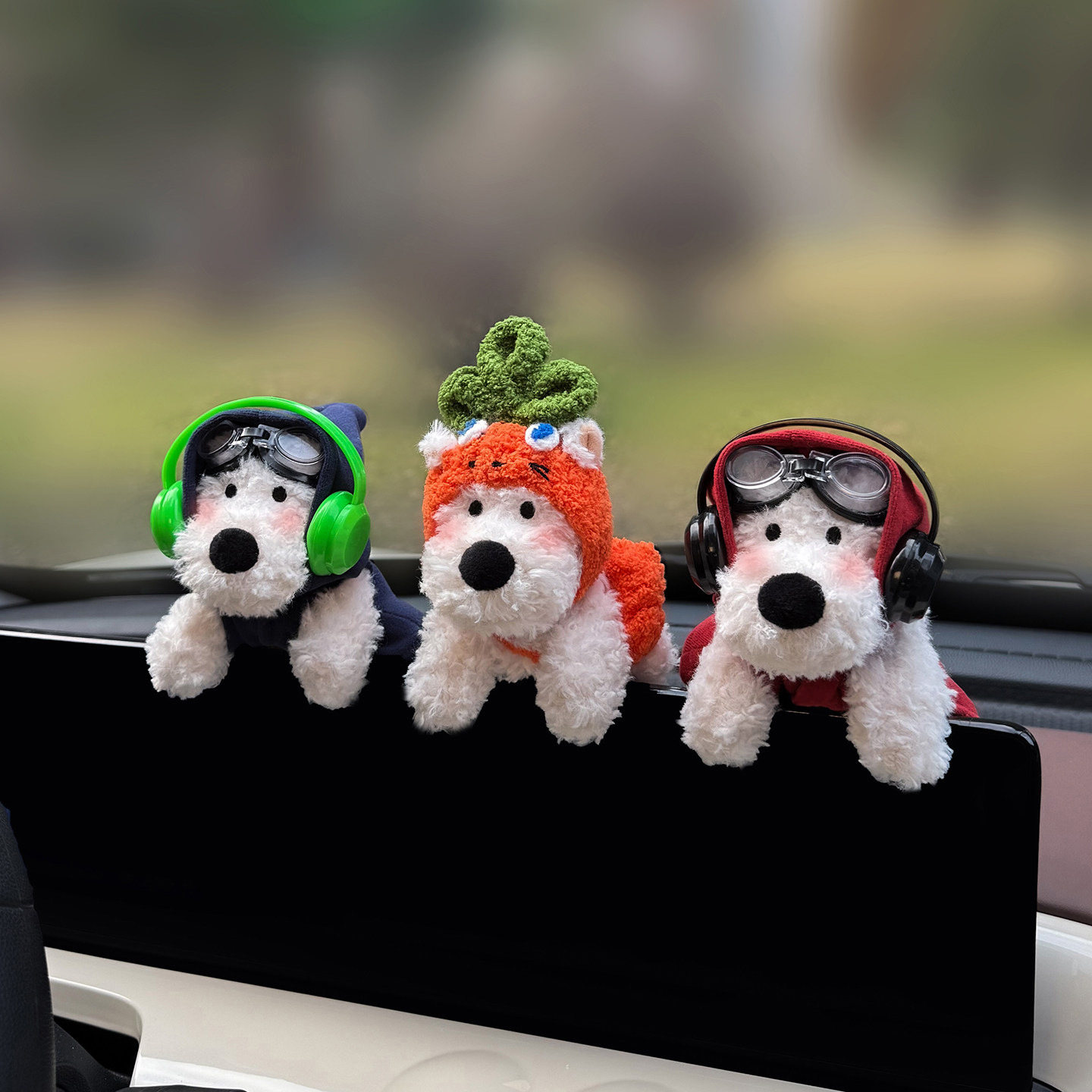 西高地汽车车内饰品中控屏趴趴公仔小狗显示屏幕装饰可爱车载摆件