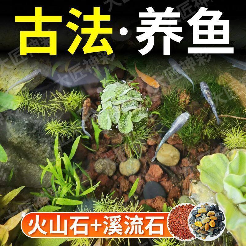 天然免洗火山石溪流石鱼缸原生水族套餐天然低沙铺底颗粒造景装饰