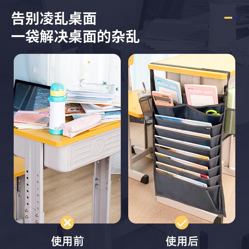 得力学生书袋挂袋高中生桌边课桌挂书袋初中书挂袋多功能学生课桌书本课本收纳神器大容量置物袋书桌侧面挂袋