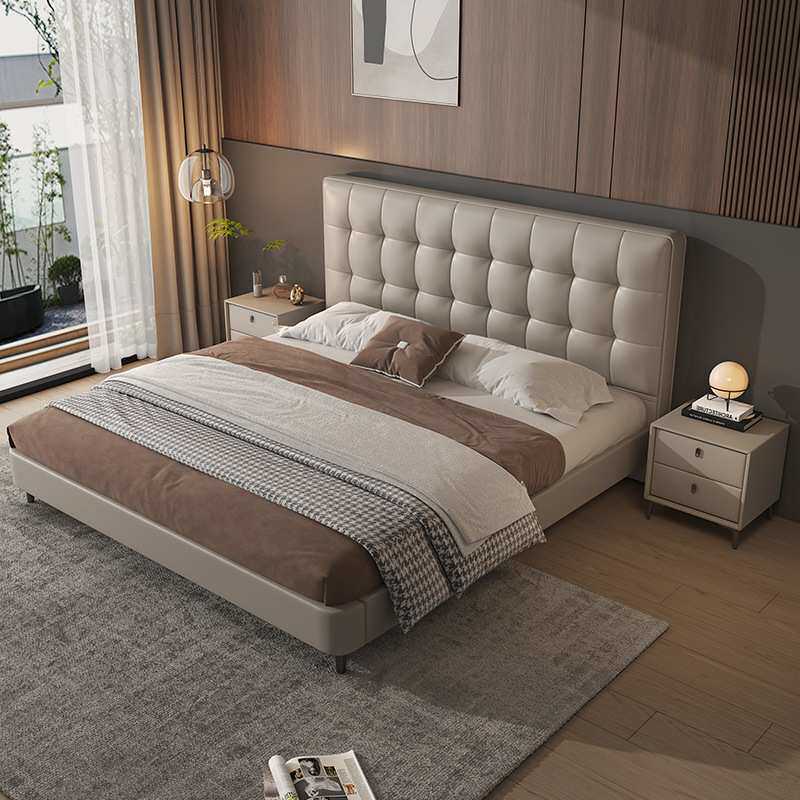 真皮双人床新款婚床储物气压1.8m实木皮艺床家用卧室榻榻米软包床