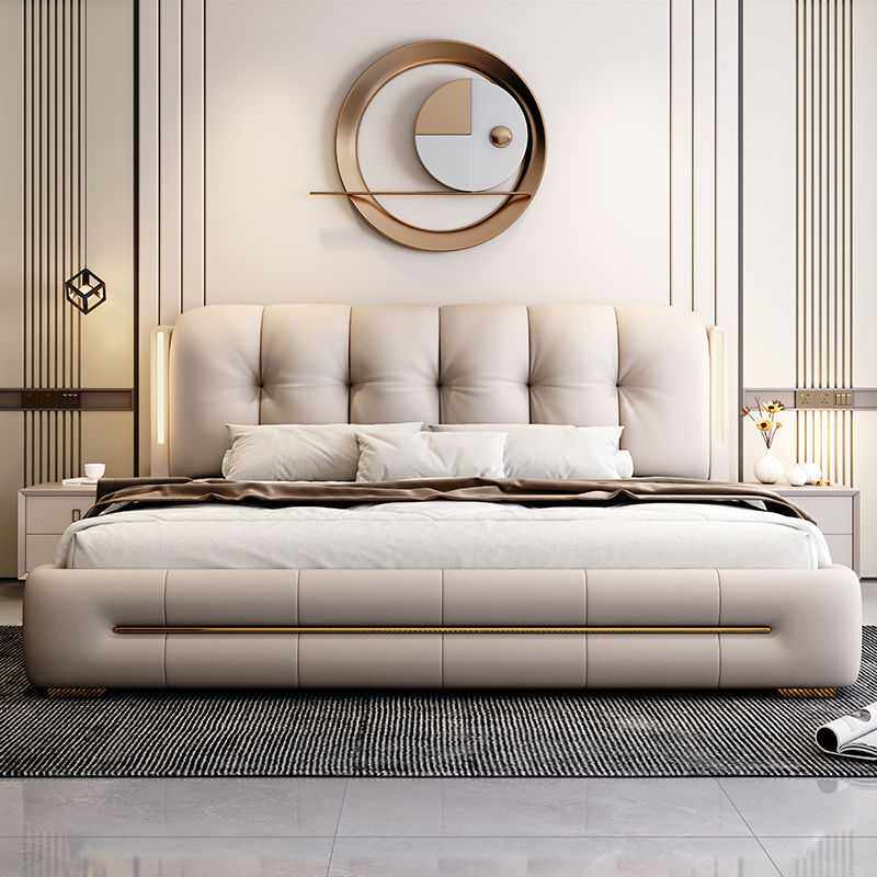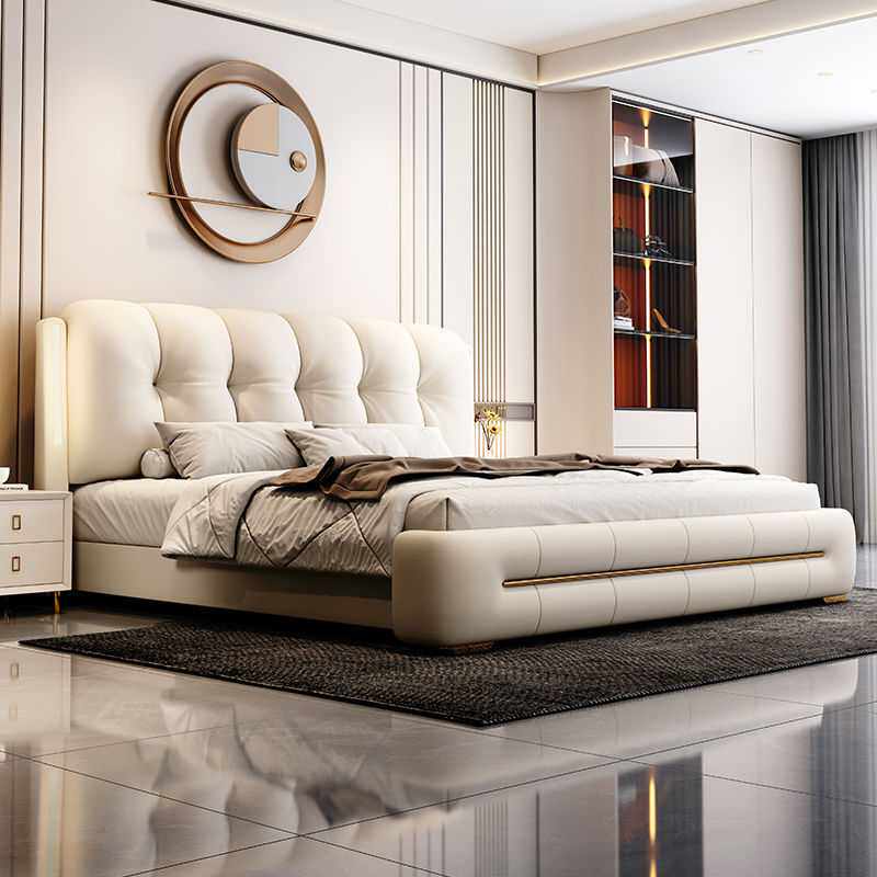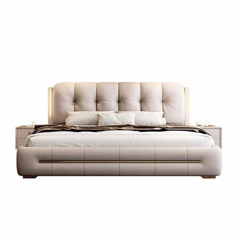 意式新款夜灯床轻奢现代简约双人软包皮艺床1.5储物床1.8主卧大床
