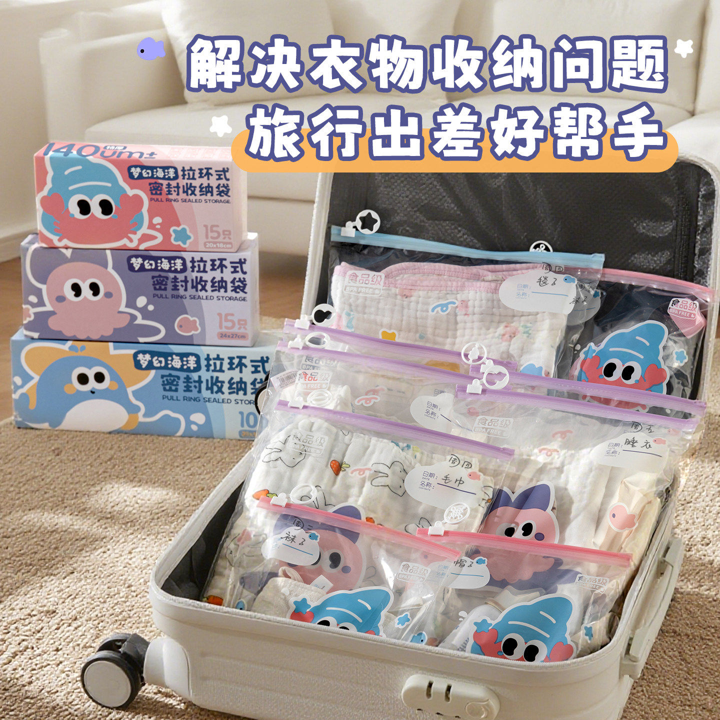 旅行衣物收纳袋儿童宝宝衣服透明防水内裤袜子密封拉环袋幼儿园