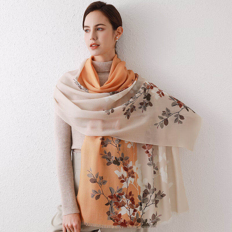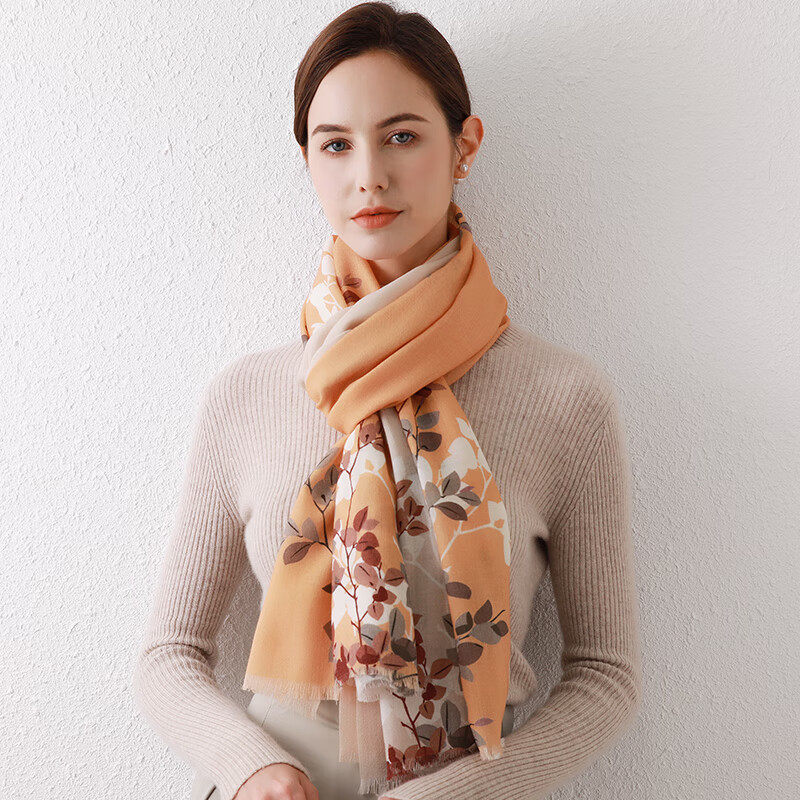 100%羊毛围巾女秋冬围脖大披肩礼盒装送长辈妈妈生日礼物