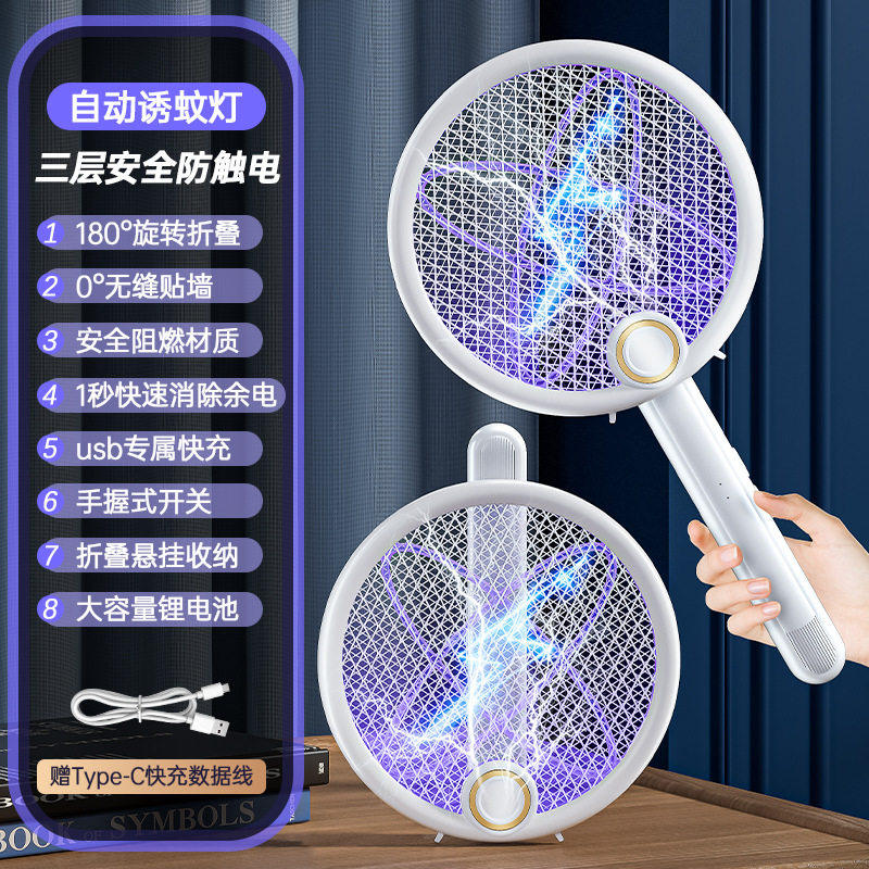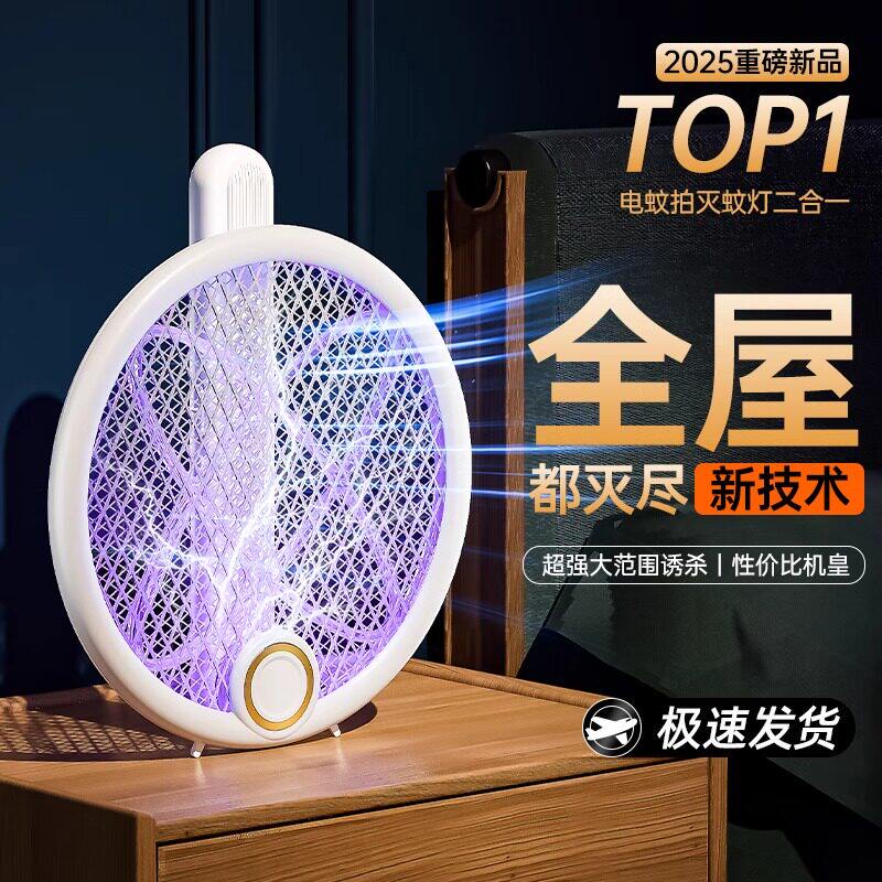 可折叠电蚊拍充电式家用强力2026新款自动灭蚊灯二合一驱蚊苍蝇拍