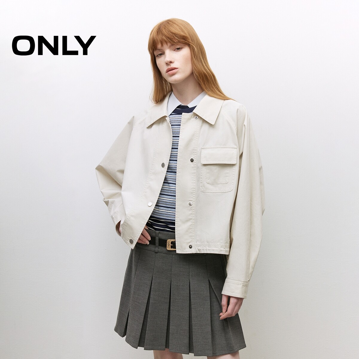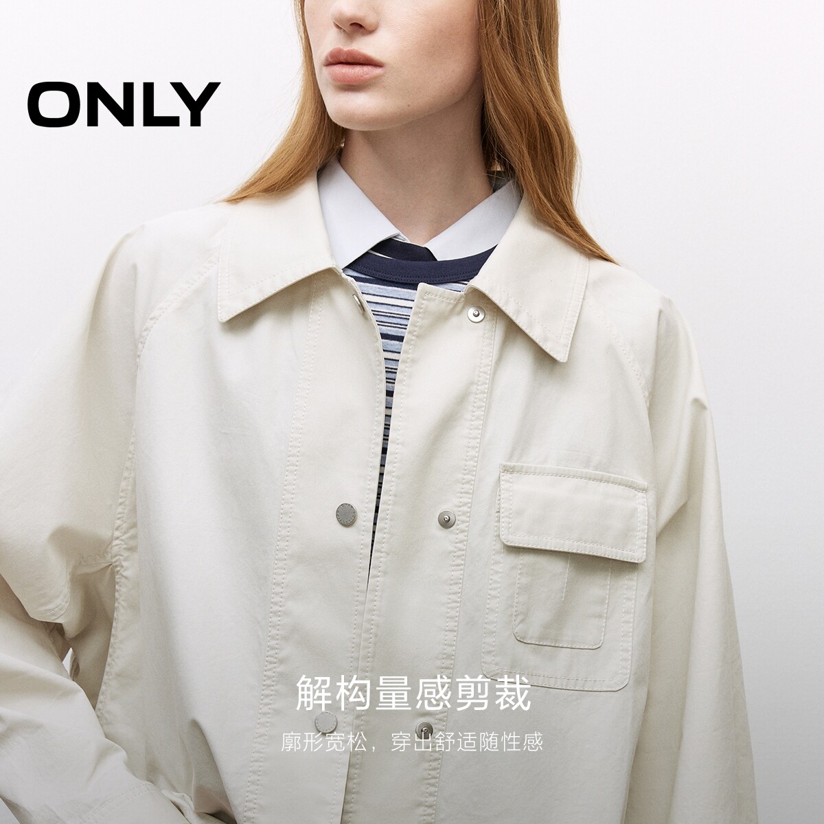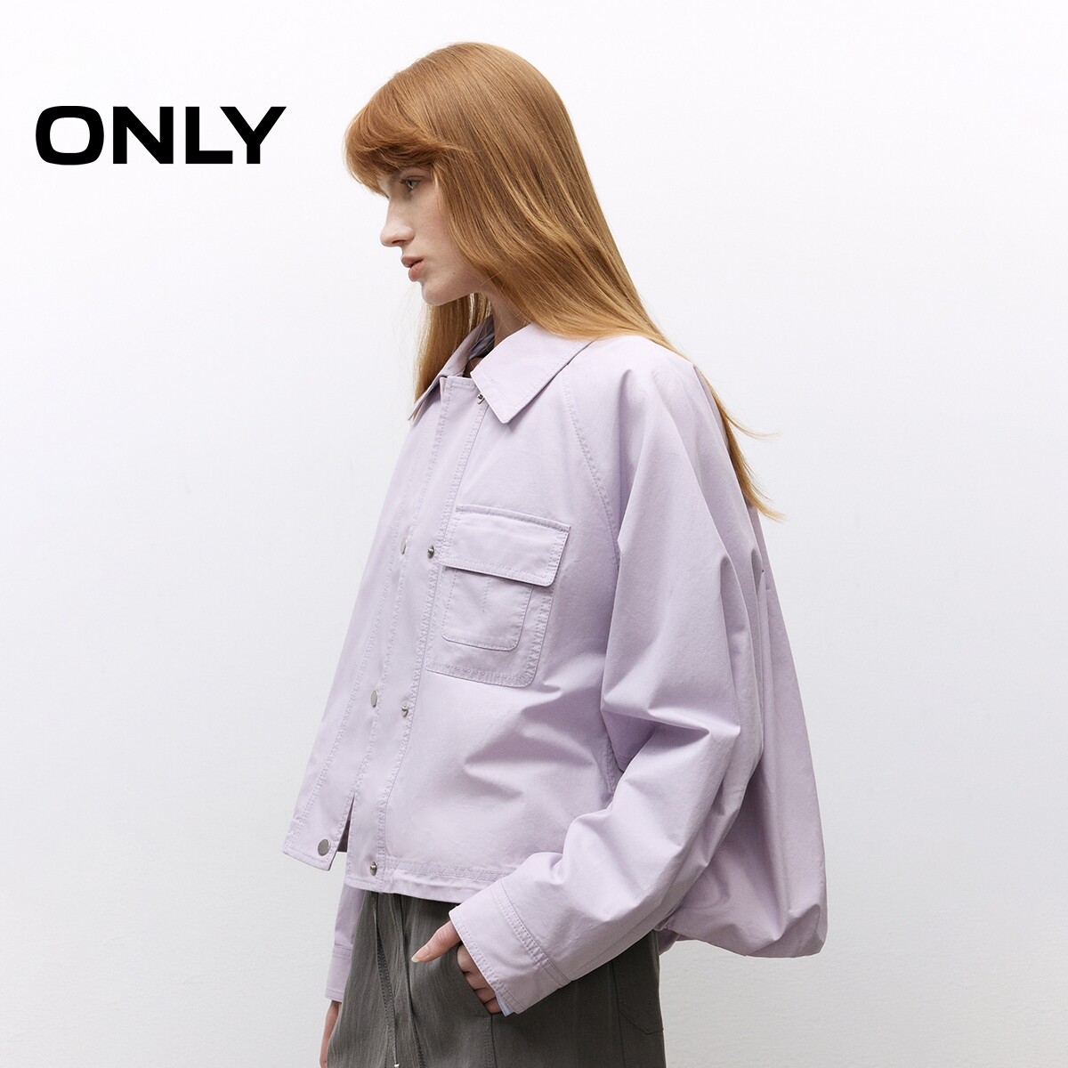 【ONLY奥莱】春季简约纯色不对称贴袋插肩袖翻领宽松显瘦外套女