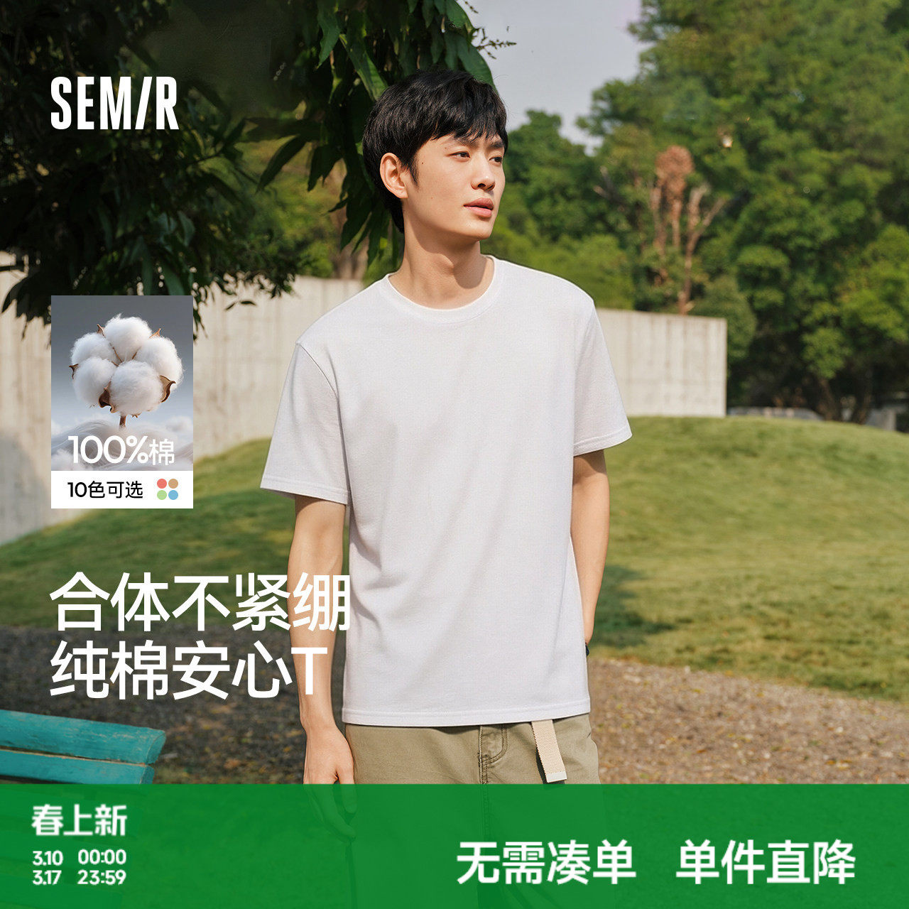 森马短袖T恤男装新款纯棉半袖情侣纯白圆领凉感白t休闲打底衫贴身