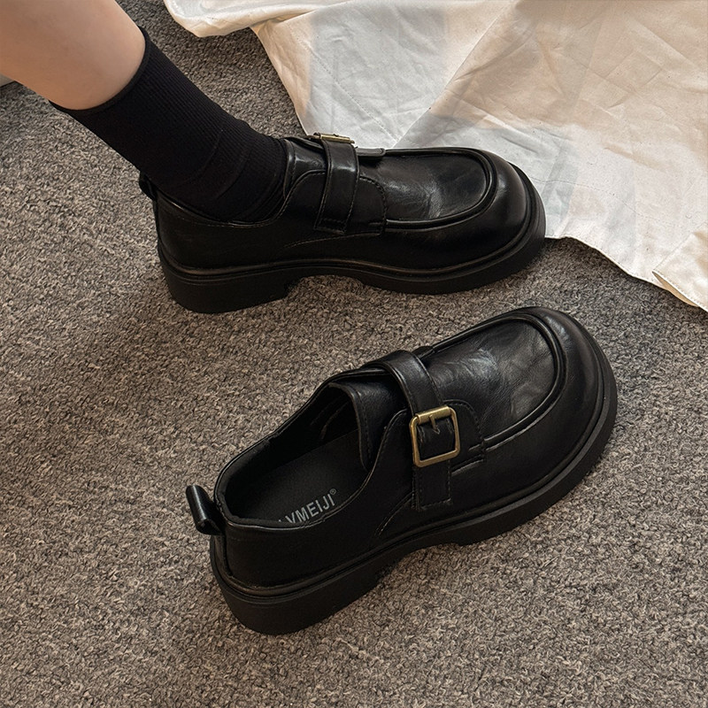 真皮厚底乐福鞋女2025春秋新款季松糕黑色百搭单鞋jk英伦风小皮鞋